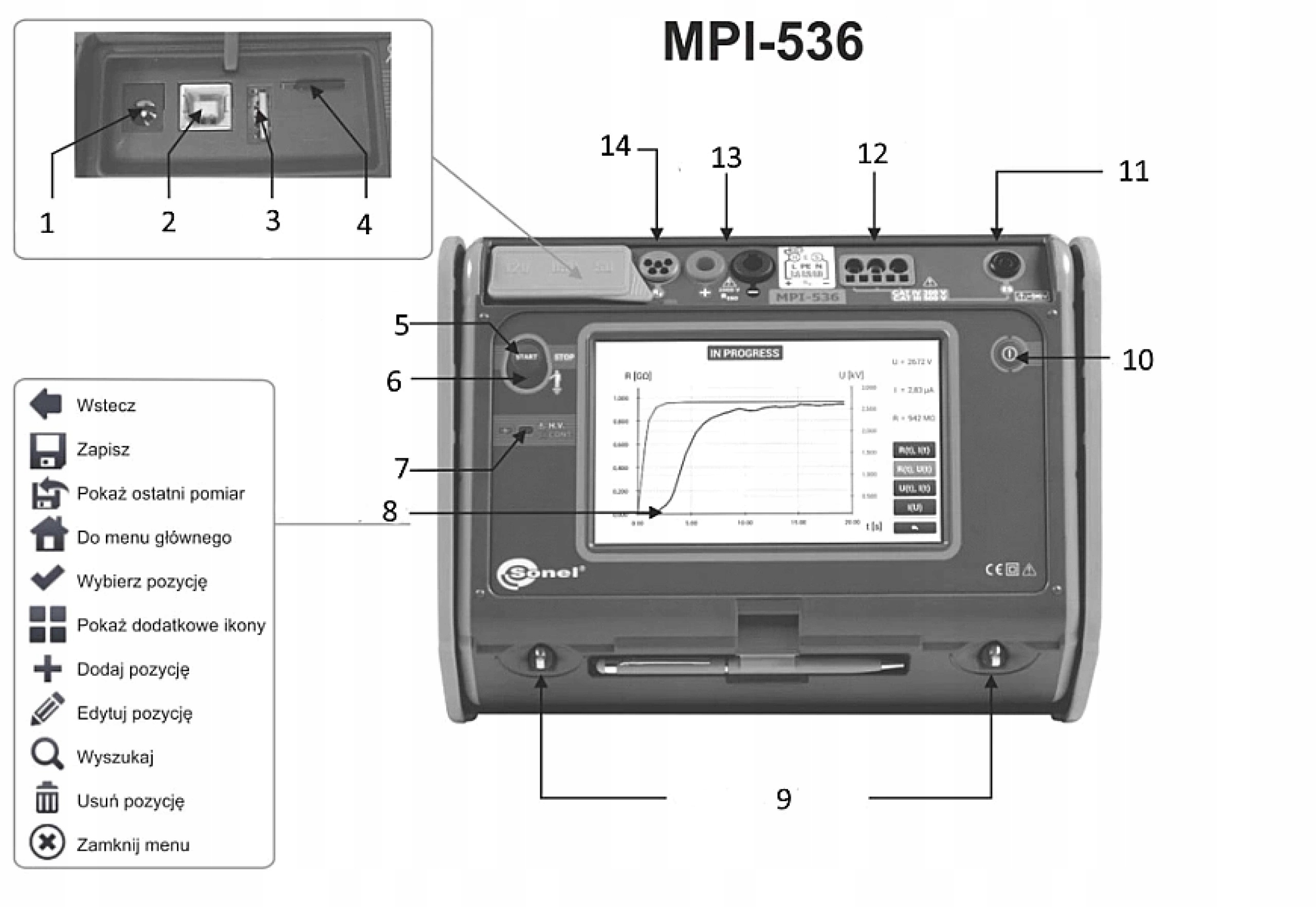 Sonel MPI-536 Електричні параметри з кабельним адаптером