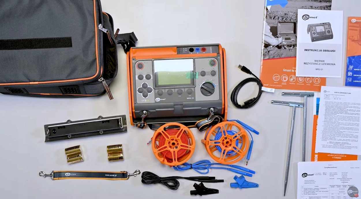 ✔ Метод заземлення опору Sonel MRU-21 -це простий лічильник, який дозволяє вимірювання заземлення за допомогою технічного методу та вимірювання безперервності захисних та компенсаційних з'єднань. > Вимірювання опору заземлення за допомогою допоміжних електродів за допомогою допоміжних електродів методом 3p, , а також вимірювання опору 2p. Пристрій також працює для перевірки безперервності розширення з'єднань та захисних.