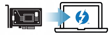 • Підтримує практично будь-яку сумісну картку Thunderbolt 3 – карти PCIe до 19.6 можна використовувати завдовжки см