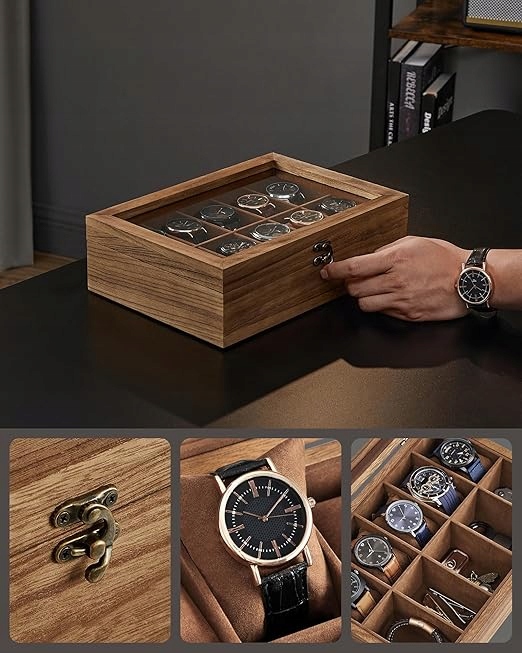 - [Висока ємність] Завдяки 10 відділень, цей випадок дозволяє вам розміщувати годинники з розміром до 51 мм в одному комфортному, щоб ви могли легко шукати. Простіше насолоджуватися годинниками або вирішити, який годинник носити сьогодні, не відкриваючи обкладинку - ця скляна обкладинка відповідає всім вимогам