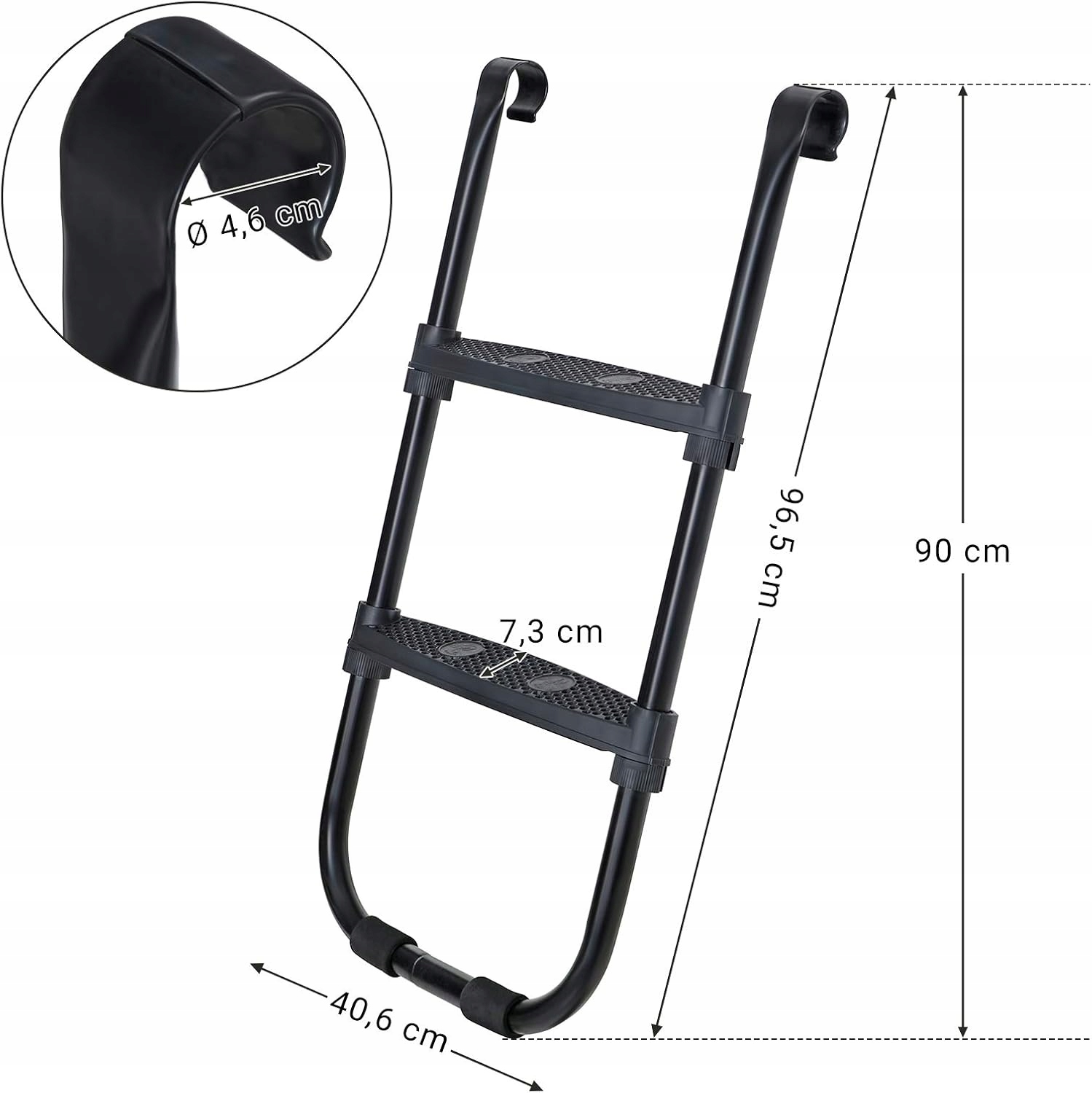 - Ця драбина розміром 40,6 x 7,3 см підходить для батутів висотою до 90 см. Перед покупкою переконайтеся, що драбина підходить для вашого пристрою для стрибків.