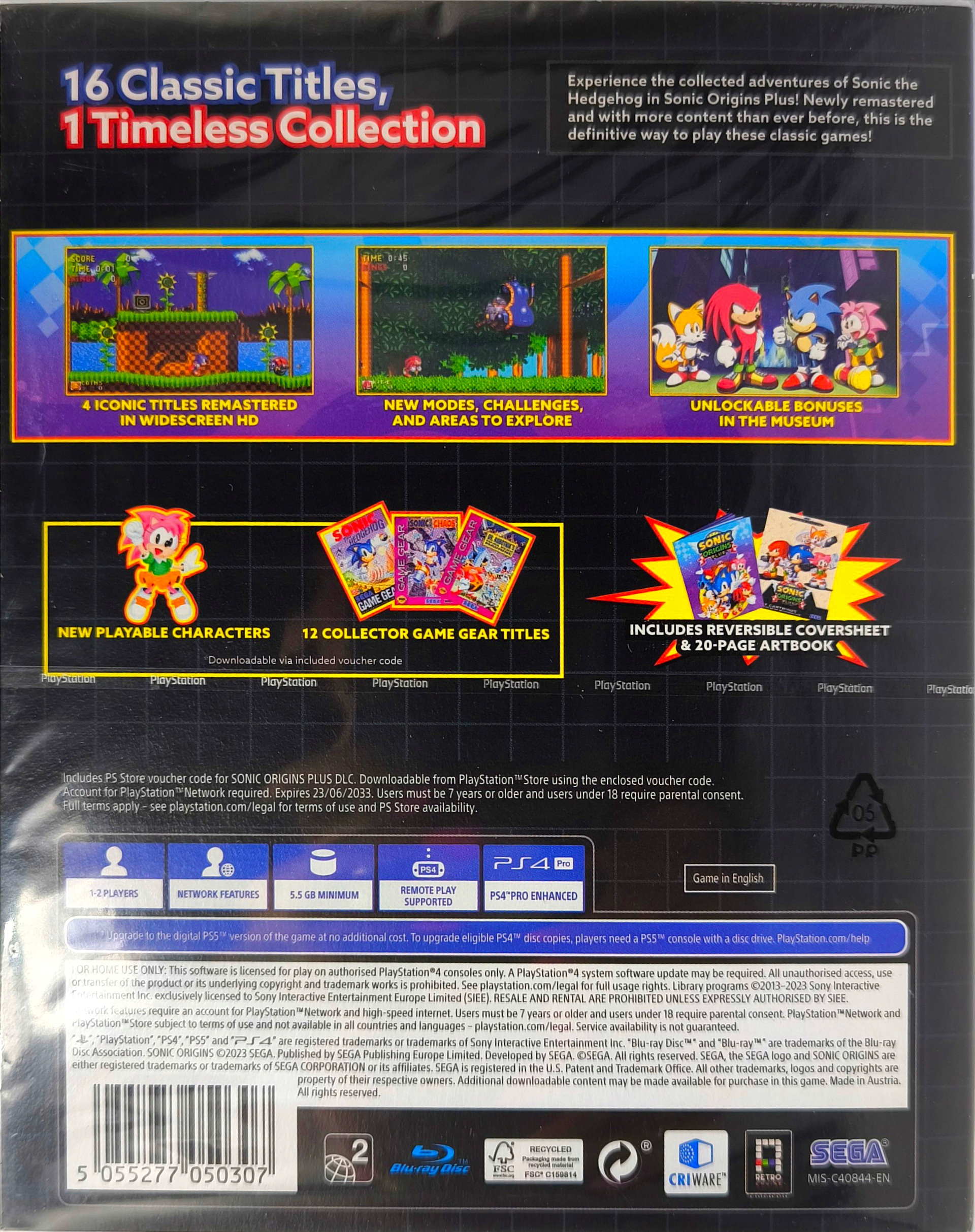 Грайте за Соніка, Тейлза чи Наклза в Sonic the Hedgehog , Sonic the Hedgehog 2, Sonic 3 & Knuckles і Sonic CD! І вперше в історії зіграйте за Емі Роуз у цих легендарних класичних іграх!