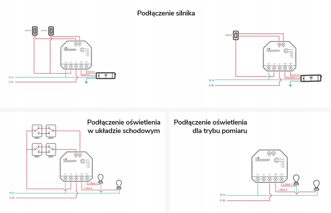 Перемикач можна використовувати як інтелектуальний модуль керування двигуном 100-240 В змінного струму. Це робить його ідеальним, серед іншого, для обслуговування автоматичні штори, електричні жалюзі, маркізи, гаражні ворота або навіть електричний гриль. Ви також можете успішно використовувати його для керування освітленням.