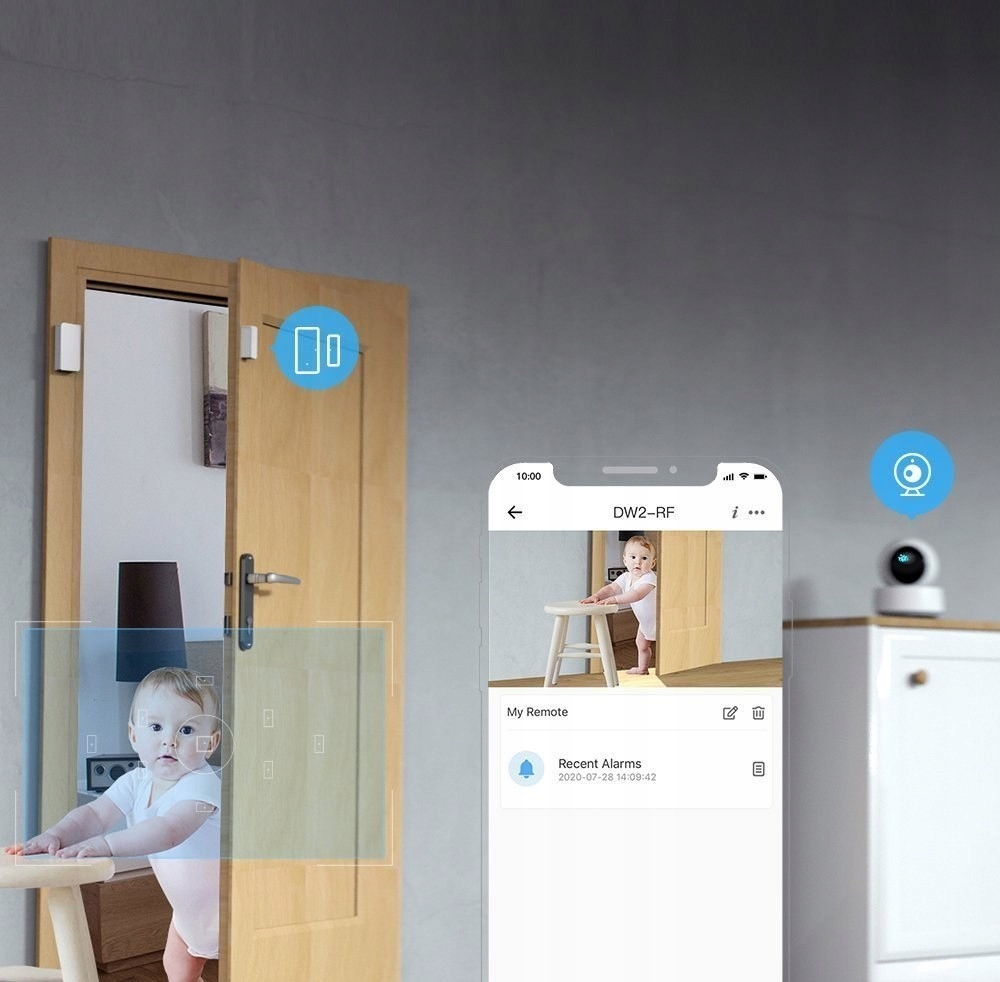 Sonoff DW2 RF – бездротовий датчик відкривання та закривання дверей і вікон. Він оснащений модулем бездротового радіочастотного зв'язку, який працює на частоті 433 МГц.Це чудова функція безпеки, яка повідомляє про небажане проникнення в будинок. Надсилає сповіщення, коли відбувається подія.