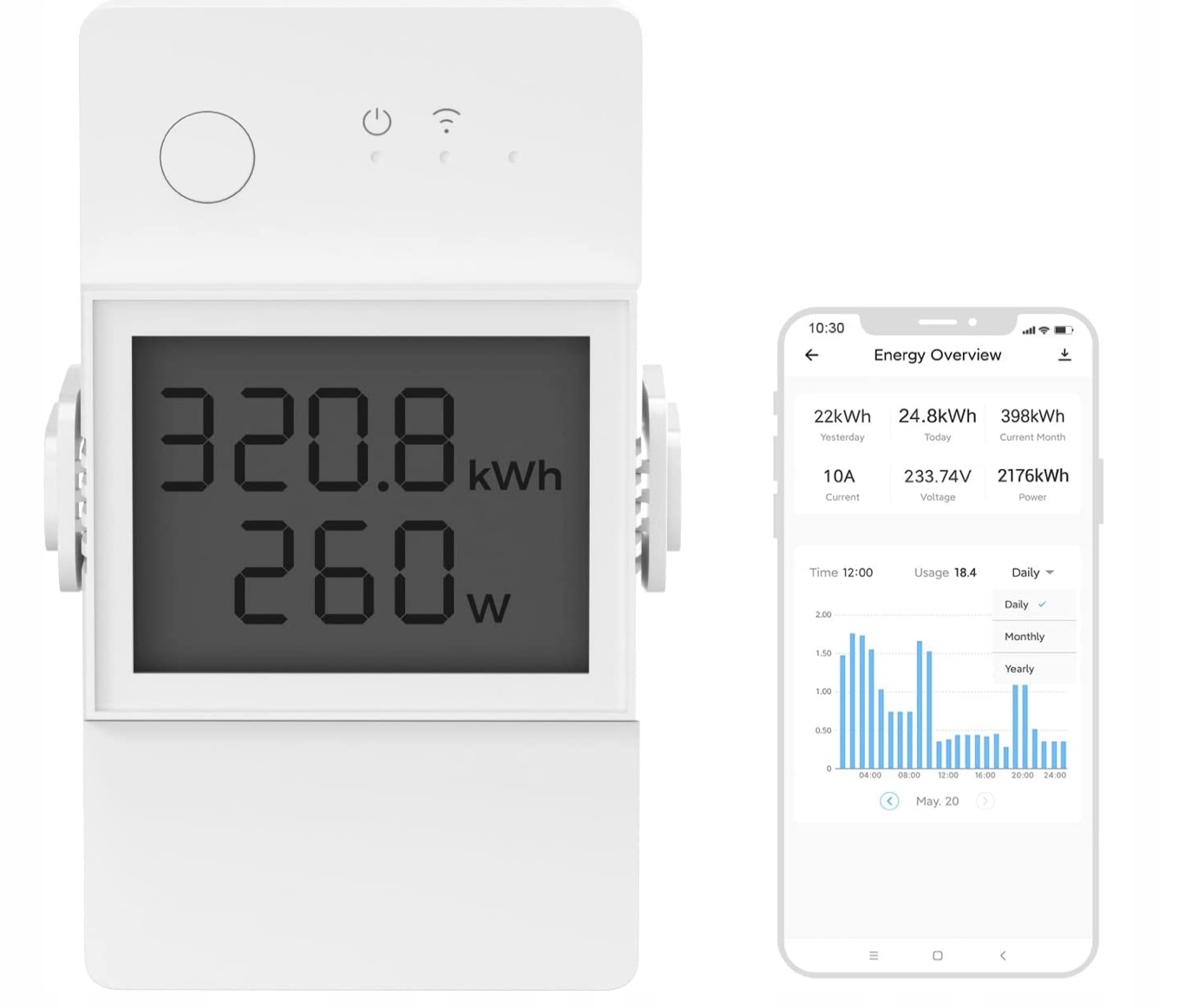 Зручно керуйте даними, зібраними комутатором. Підключіть POWR316D до програми eWeLink, щоб контролювати їх зі свого телефону! Ви також можете встановити спеціальну надбудову на свій ноутбук, щоб бачити, які пристрої ввімкнено, або перевіряти енергоспоживання у вашій квартирі. Крім того, реле зберігає зібрані дані до 6 місяців - якщо ви хочете, ви можете успішно експортувати їх і зберегти на своєму телефоні. Пристрій також має вбудований РК-дисплей, який надає поточну інформацію, зокрема про: про загальну споживану потужність, поточну потужність і струм споживання приймача.