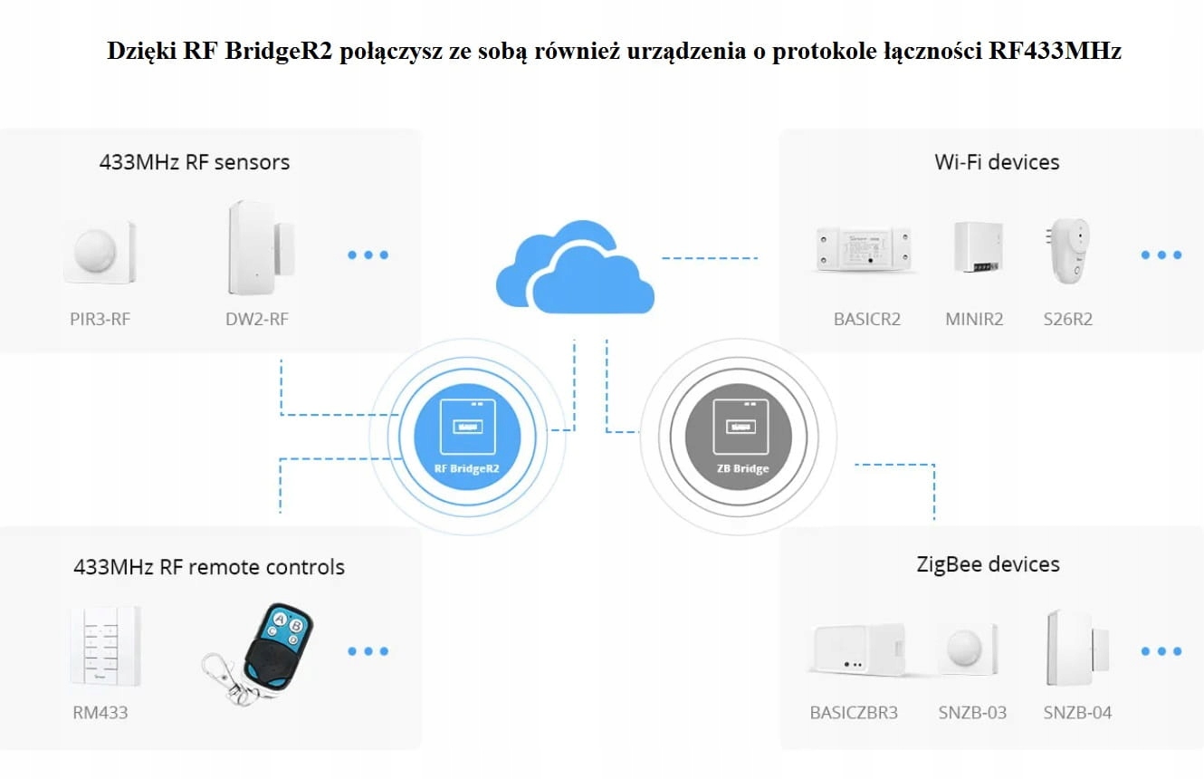 Модуль дозволяє - читати скопійований радіопульт з фіксованим кодом і потім передавати сигнал цього пульта. Якщо у вас є пристрій, яким керує радіопульт дистанційного керування, і ви хочете керувати цим пристроєм за допомогою свого телефону з будь-якого місця, Sonoff Bridge — це пристрій, який ви шукаєте.