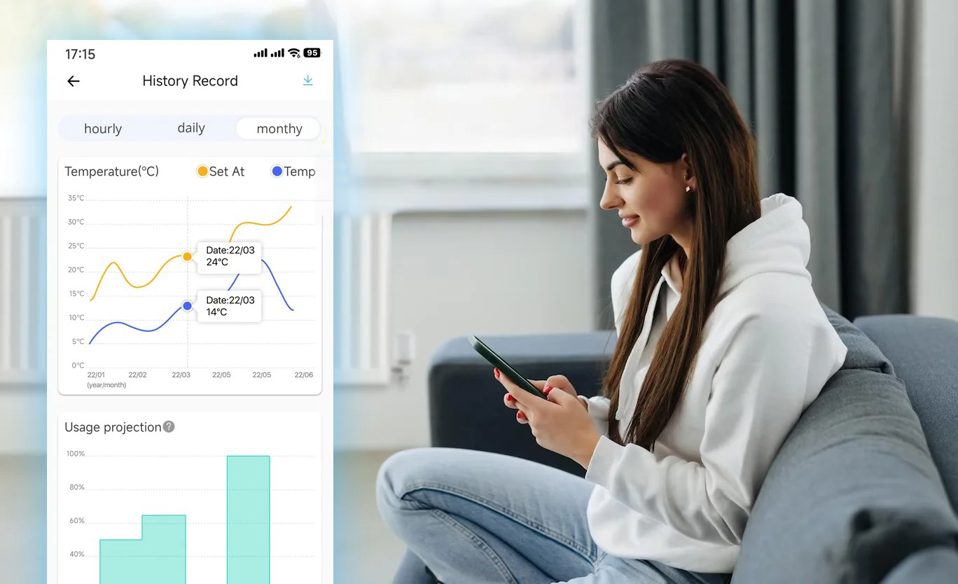 - Точне віддалене та автоматичне налаштування температури нагрівачів за допомогою програми в смартфоні ( Ewelink)