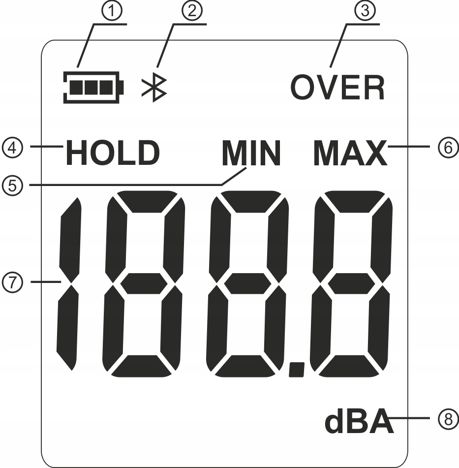 цифрового лічильника рівня звуку Bluetooth, що має характеристики корекції А. Фільтр А відповідає частотній чутливості людського вуха. Він також має функцію технічного обслуговування максимального значення та сигналізацію про розрядок акумулятора. Ідеально підходить для звукових інженерів, людей, відповідальних за безпеку на роботі та багато інших професій.