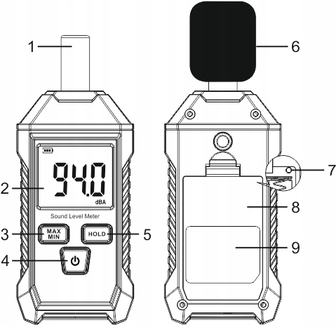 - Цифровий децибел -лічильник з щитом перед вітром,