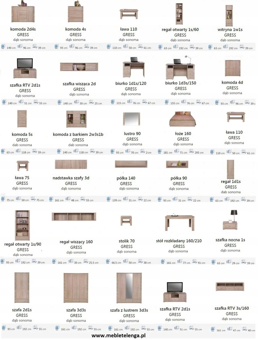 -x20 см. 4 Висота: 96см кольорів: -dąbs Sonoma - роликові путівники - Ручки, виготовлені з пластику - ноги з пластику та дерева Загальна інформація: - замовник, який купуватиме меблі на наших аукціонах, повідомляється SMS або по телефону на день або два до дня доставки. -mele у пакетах для незалежної збірки.
