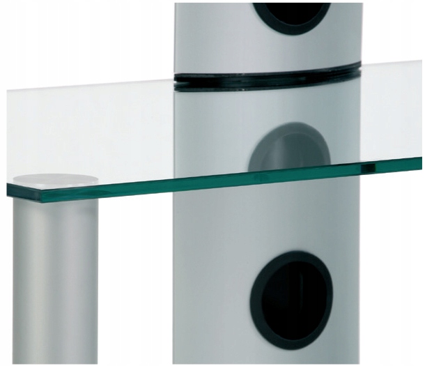 NEO110 - це столик під телевізор з двома полицями та тримачем для телевізора з можливістю повороту екрана, конструкція з високоякісного алюмінію круглої та овальної форми, полиці із загартованого скла з полірованим краю, ширина 110 см . Стіл оснащений колесами та системою керування кабелем.