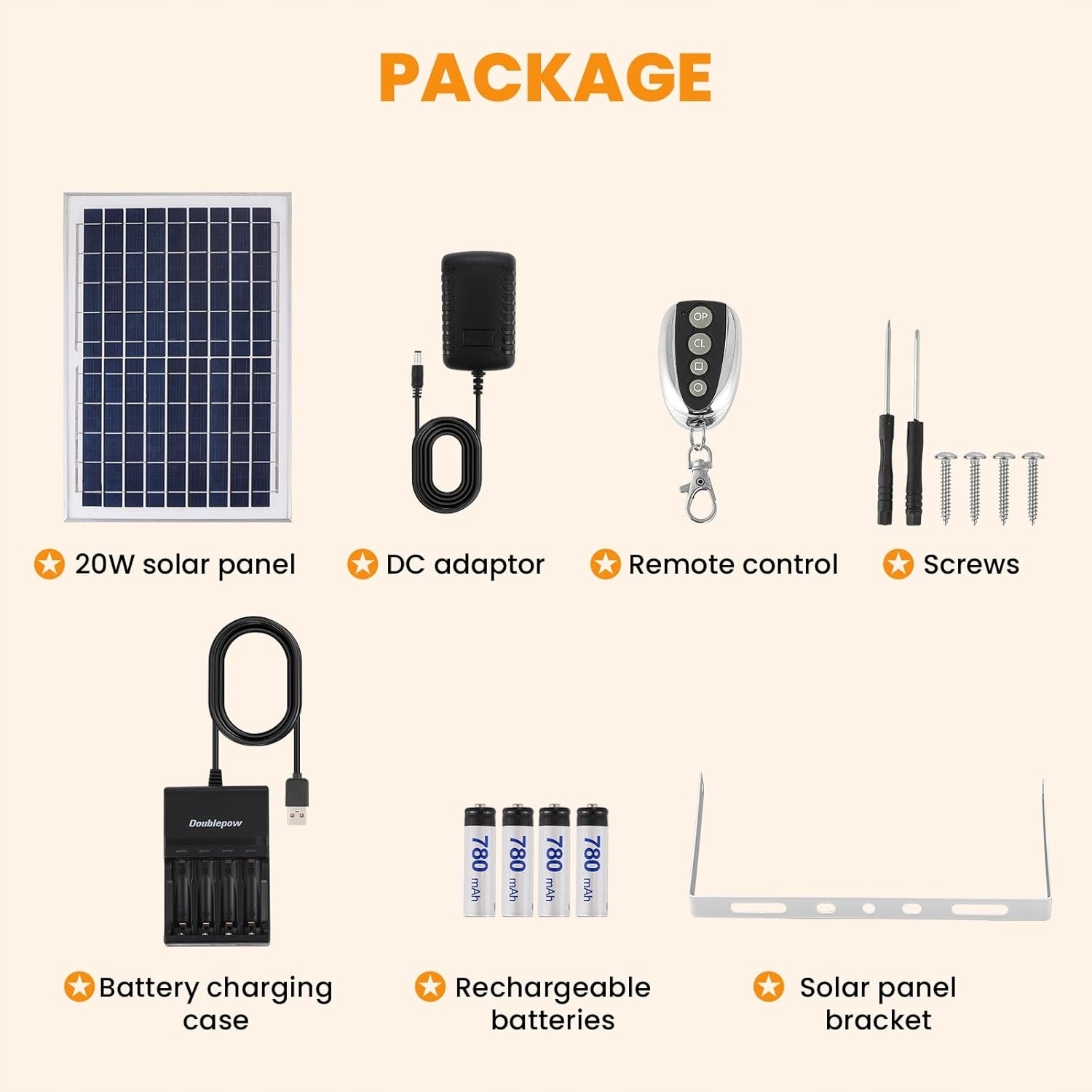 - Спеціальна функція: оновлений пристрій відкривання дверей, датчик світла та таймер, захищена від дощу конструкція, наддовгий час автономної роботи, гнучке встановлення. Оновлений пристрій відкривання дверей, датчик світла та таймер, захищена від дощу конструкція, надтривалий час автономної роботи, гнучке встановлення