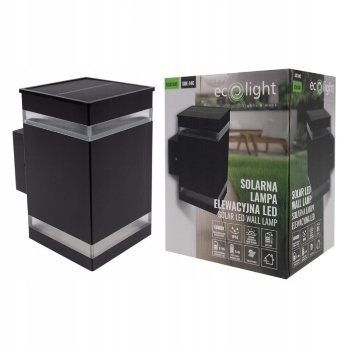 СОНЯЧНА ФАСАДНА ЛАМПА САДОВА БРА LED SOE-14C IP44 ЧОРНА