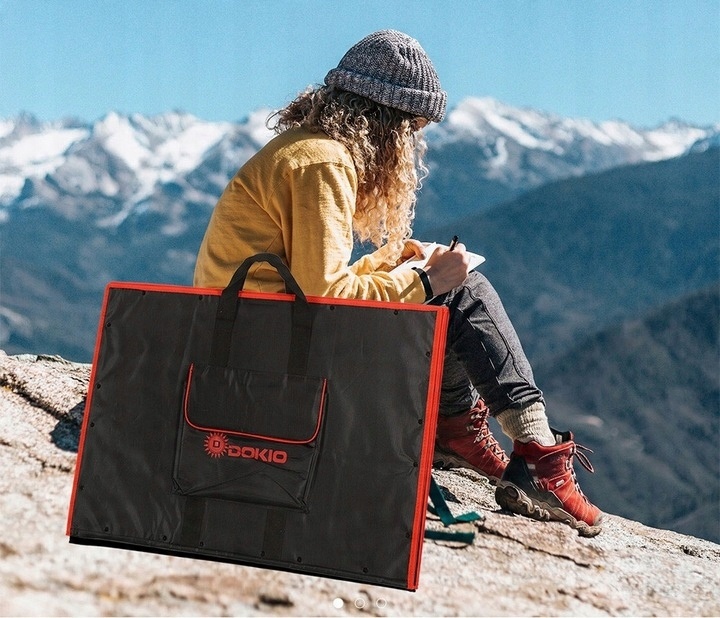 Dokio 220 Вт 18 В – гнучка, складна сонячна панель. Ця портативна сонячна панель підходить для різних випадків – для кемпінгу, човна, автомобіля, сімейної подорожі чи просто вдома. Це практичний набір, яким можна користуватися без проблем. Розгорніть його, підключіть до вибраного мобільного пристрою, і це все, що вам потрібно, щоб насолоджуватися додатковою безкоштовною енергією! Слід зазначити, що сонячна панель займає дуже мало місця. Ви можете помістити його в будь-яку сумку або рюкзак. І на десерт варто згадати його міцну конструкцію, що означає тривалий термін служби та незаперечну довговічність набору.