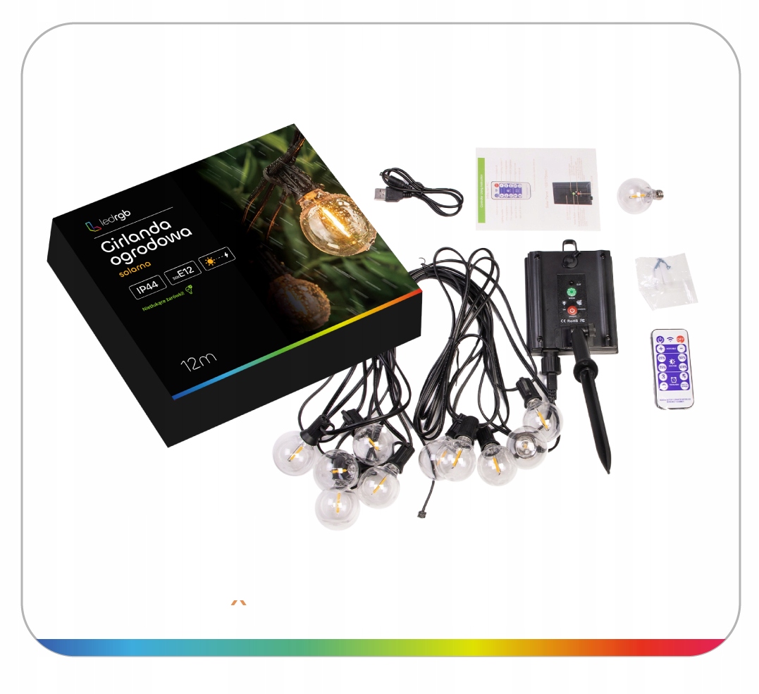 - Жерво живлення: фотоелектрична панель, яка використовується для зарядки гірлянди