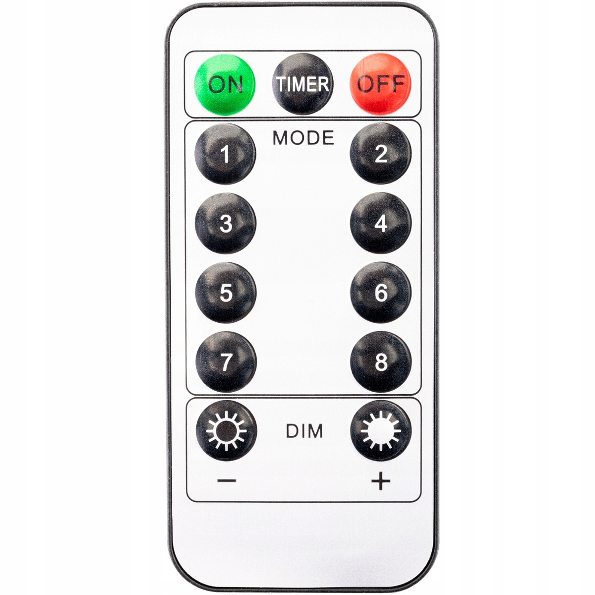 Пульт дистанційного керування, що входить до комплекту, дозволяє керувати гірляндою з максимальної відстані 5 метрів. Пульт дистанційного керування включає функцію зворотного відліку часу, регулювання яскравості та 8 режимів освітлення.