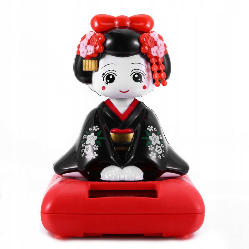 - ГЕЙША, КИВАЮЧА ЛЯЛЬКА, АКТИВНА НА СОНЯЧНОМУ СВІТЛІ, ПРОСТО ПОСТАВТЕ ЇЇ НА ВІКНО АБО ЗАКРІПЛІТЬ НА ПРИЛАДОВІЙ ПАНЕЛІ ВАШОГО АВТОМОБІЛЯ, І ВОНА ПОЧНЕ КИВАТИ.