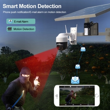 GSM панорамна камера з потужною сонячною панеллю для SIM-карти 4G 1080P 2MPX, запис IR60 на карту mSD, ZOOM x4, датчик SONY!
