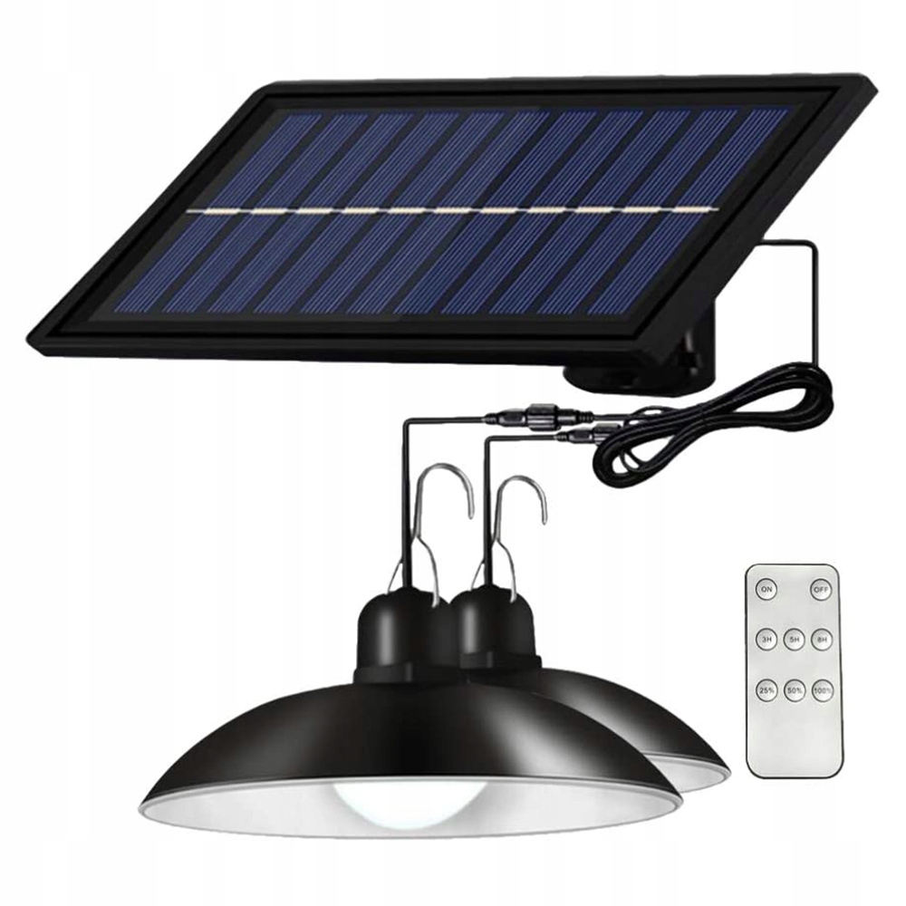 * Оновлений сучасний дизайн із 1/2 лампою: сонячна панель і корпус лампи розроблені окремо, одна сонячна панель можна підключити одну/дві/три/чотири лампи, що більш практично, і лампа має класичний дизайн з чорним металевим абажуром у стилі ретро. (Примітка. Цей сонячний підвісний світильник не має функції дистанційного керування та виявлення руху.)