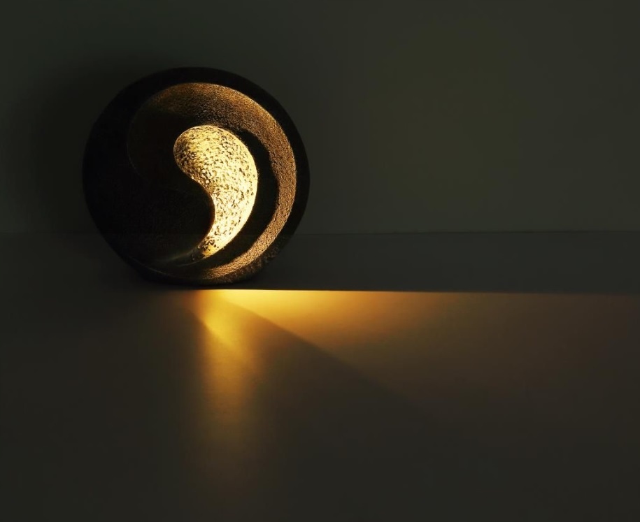More information about the project: solar light sculpture in stone, round, 29.5x11x29cm, Globo