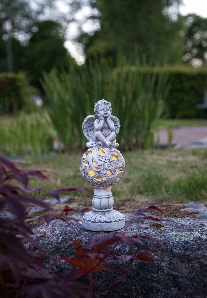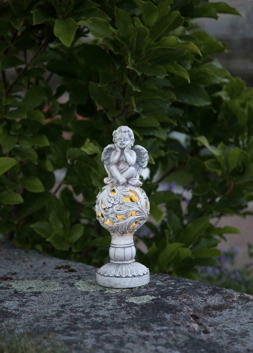 - Фігурка також ідеальна як Оздоблення могили – не тільки через відповідне оформлення. Він стійкий до погодних умов і живиться від батареї, яка заряджається від сонячної панелі - завдяки цьому куля світиться без електрики та батарейок.