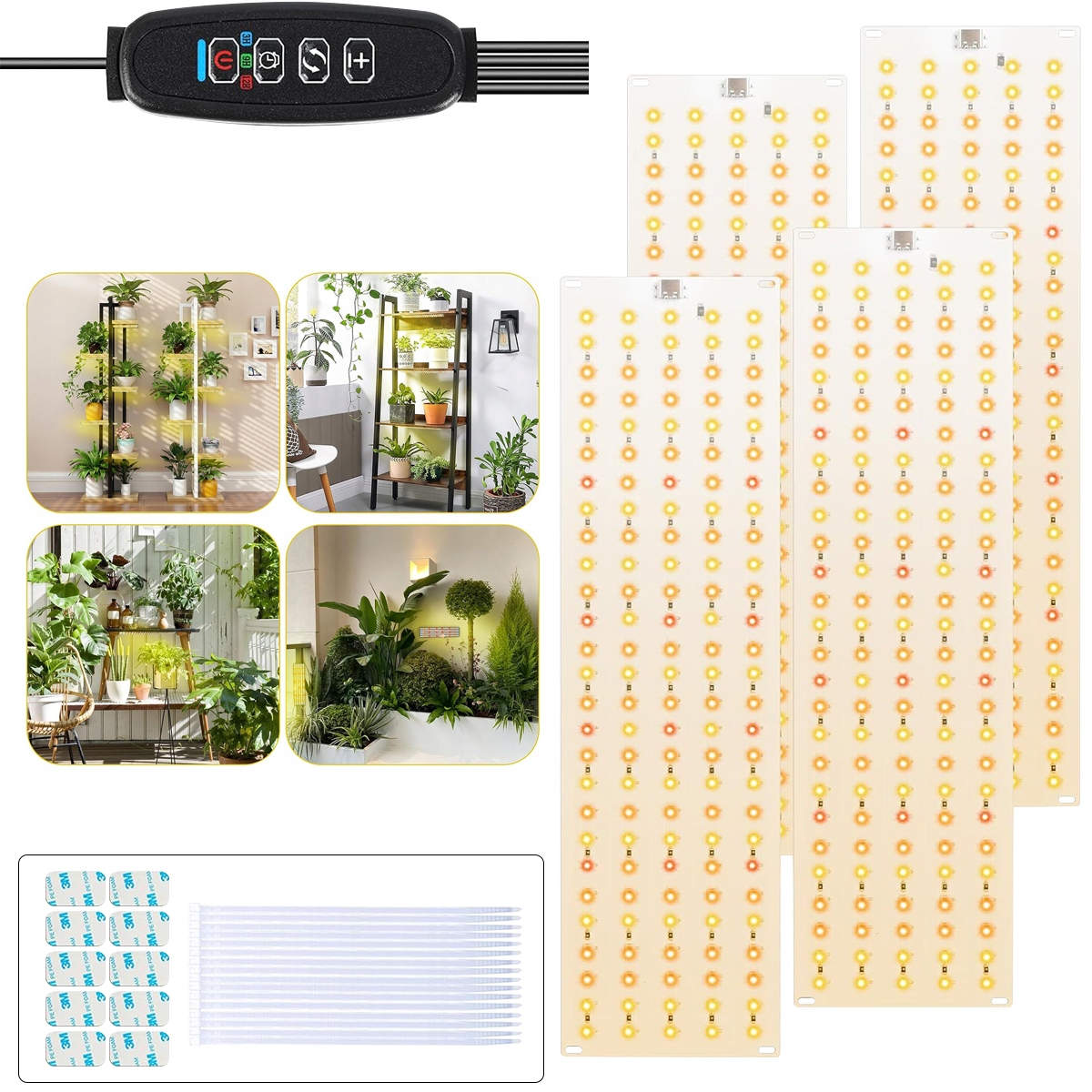 🌿 【DIY Grow Light】DIY Grow Light складається з 4 ультратонких панелей. Лампа для рослин Гнучка, її можна регулювати на різну довжину та ширину. Освітлювальні панелі можна підвісити за допомогою зручних кабельних стяжок або заховати під полицю/шафу за допомогою двосторонньої клейкої стрічки 3M, що економить місце. Підвісний ліхтар для вирощування рослин може значно покращити діапазон освітлення та ефективність росту рослин.