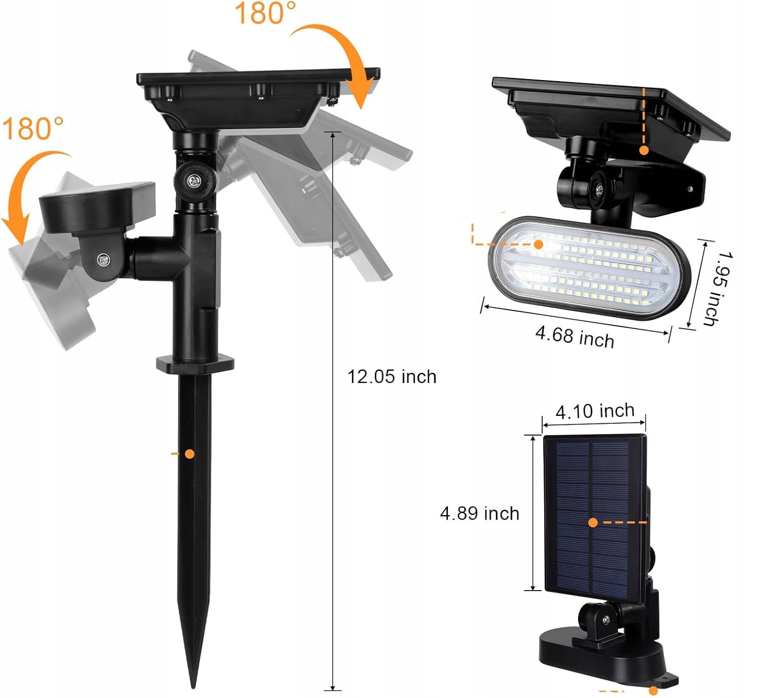 Світло та сонячну панель можна регулювати на 180° вгору та вниз окремо, щоб адаптувати різні напрямки сонячного світла.