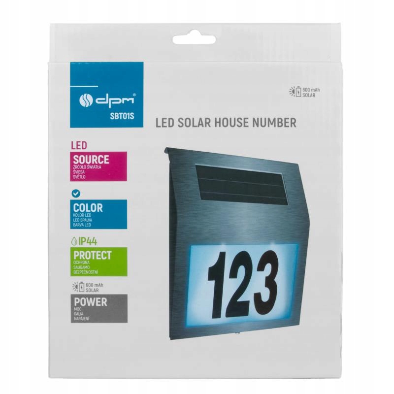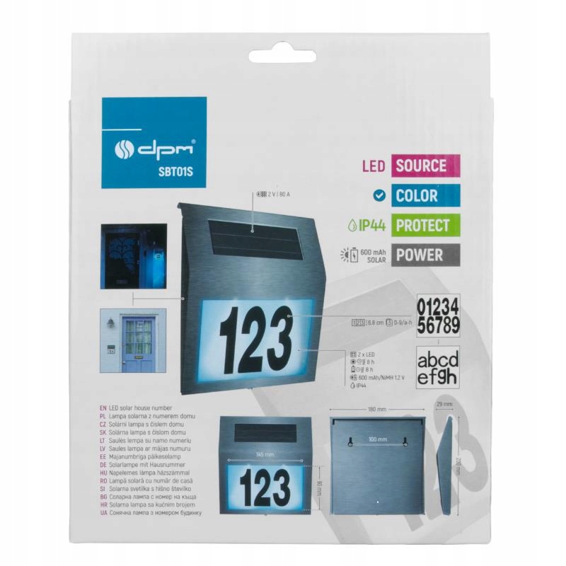 Завдяки 3 наборам цифр і букв світильник дозволяє вільно встановлювати номер будинку або квартири. Поле з підсвічуванням розміром 145 x 90 мм забезпечує чітке та естетичне маркування.