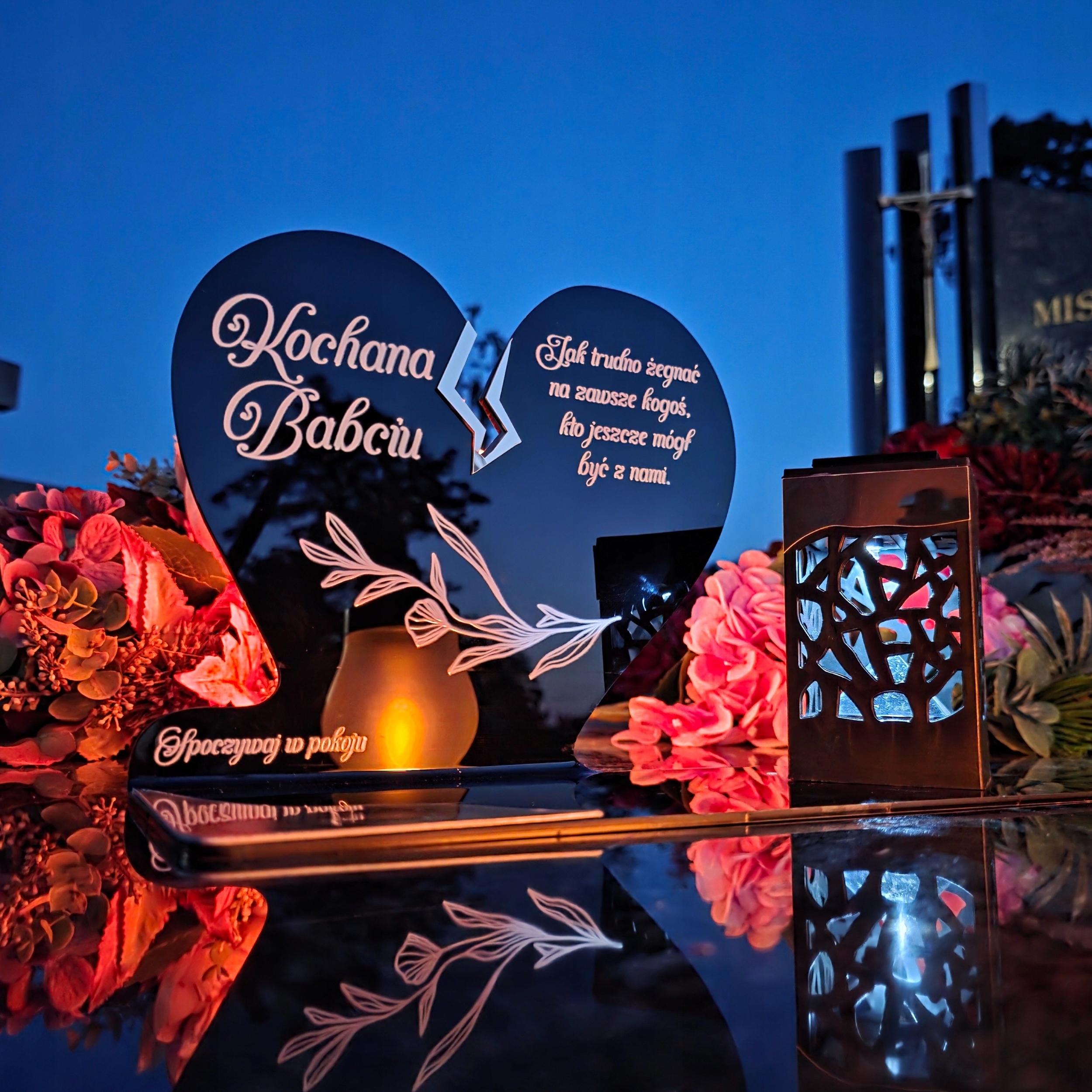Це надзвичайний сувенір, який вирізняється своїм елегантним дизайном і практичним функціонуванням. Поєднання серця з сучасним сонячним світильником означає, що свічка не тільки красиво прикрашає надгробок, але й дарує світло пам’яті цілий рік – без необхідності заміни вставок.