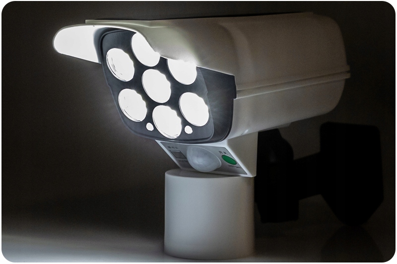 Макет-камера додатково має функцію світлодіодної лампи з датчиком руху та сутінок. Забезпечує освітлення після настання сутінків: