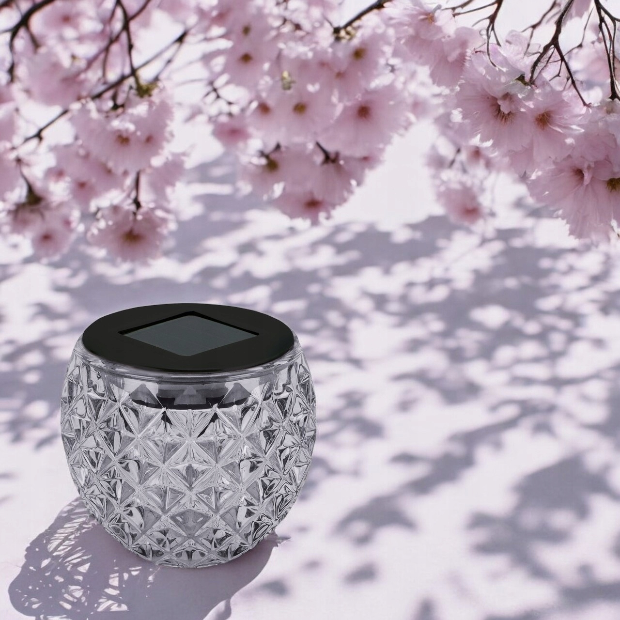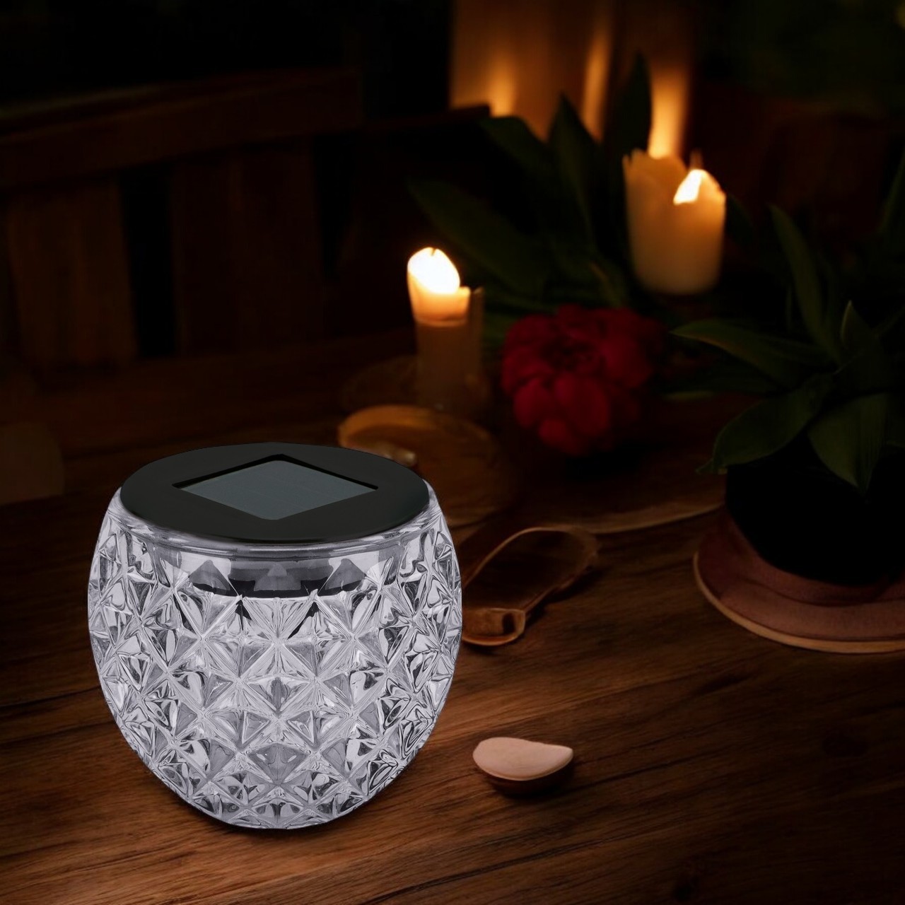 Додайте унікальну принадність у свій сад, терасу або балкон завдяки криштальній сонячній лампі. Світлодіодне освітлення з силою 0,2 Вт та білим теплим (5lm) створює затишну атмосферу, ідеально підходить для вечірнього відпочинку на відкритому повітрі. Без необхідності підключення до електроенергії - лампа працює від сонячної енергії, що робить її екологічною та економічною.
