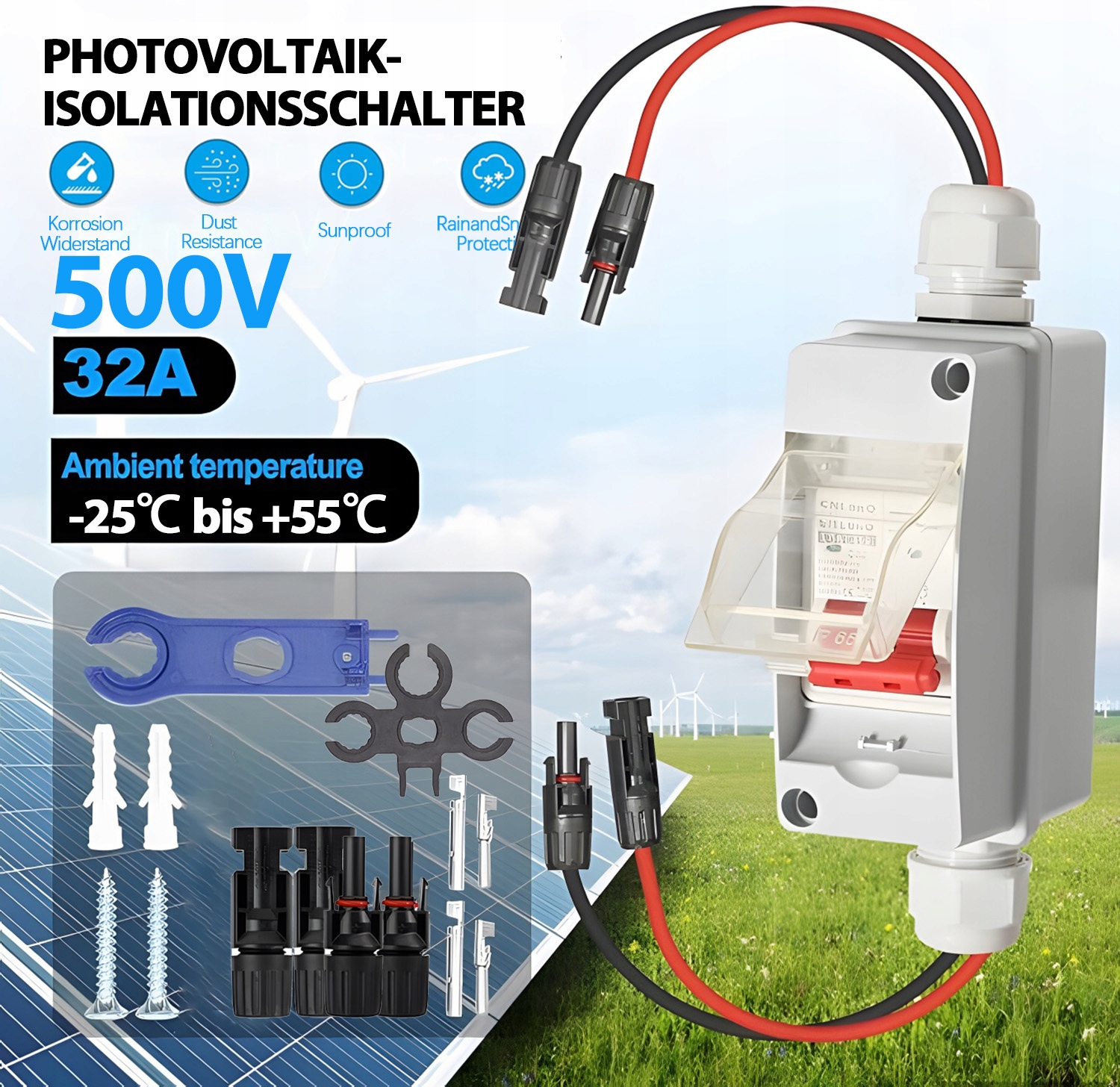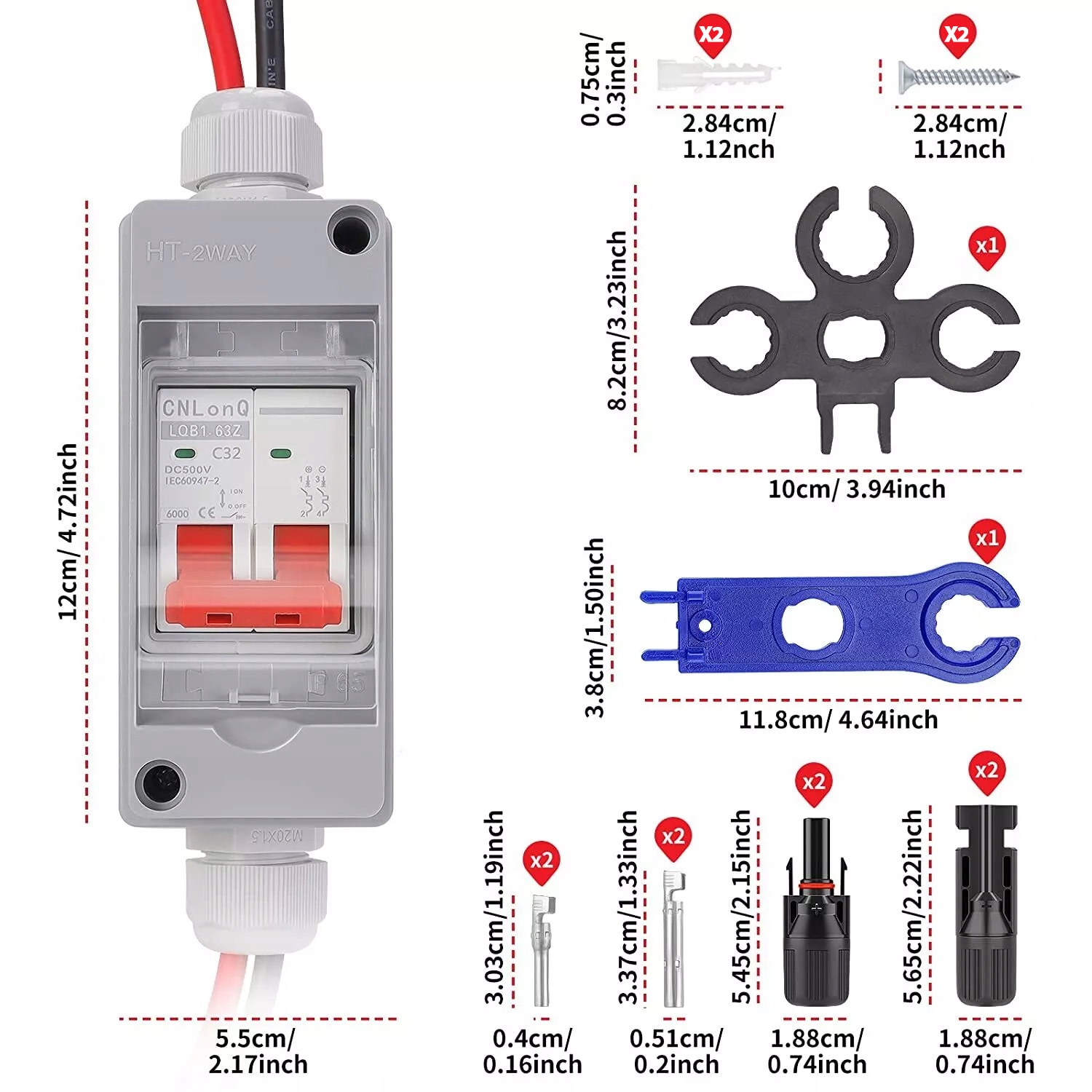 Основна функція: При встановленні фотоелектричної системи, заміну або обслуговування інвертора, перемикач постійного струму може швидко переривати струм між інвертором та панеллю акумулятора, переривати арку, що генерується прямим струмом, ізоляції навантаження до 8 разів більша за струм, що має рейтинг, тому вона ідеально підходить для ізоляції двигуна. Перемикач ізоляції постійного струму оснащений двома чоловіками та двома жіночими з'єднувачами MC-4. Це дозволяє швидше та безпечніше встановити штекер, заощаджуючи свій час. захист.