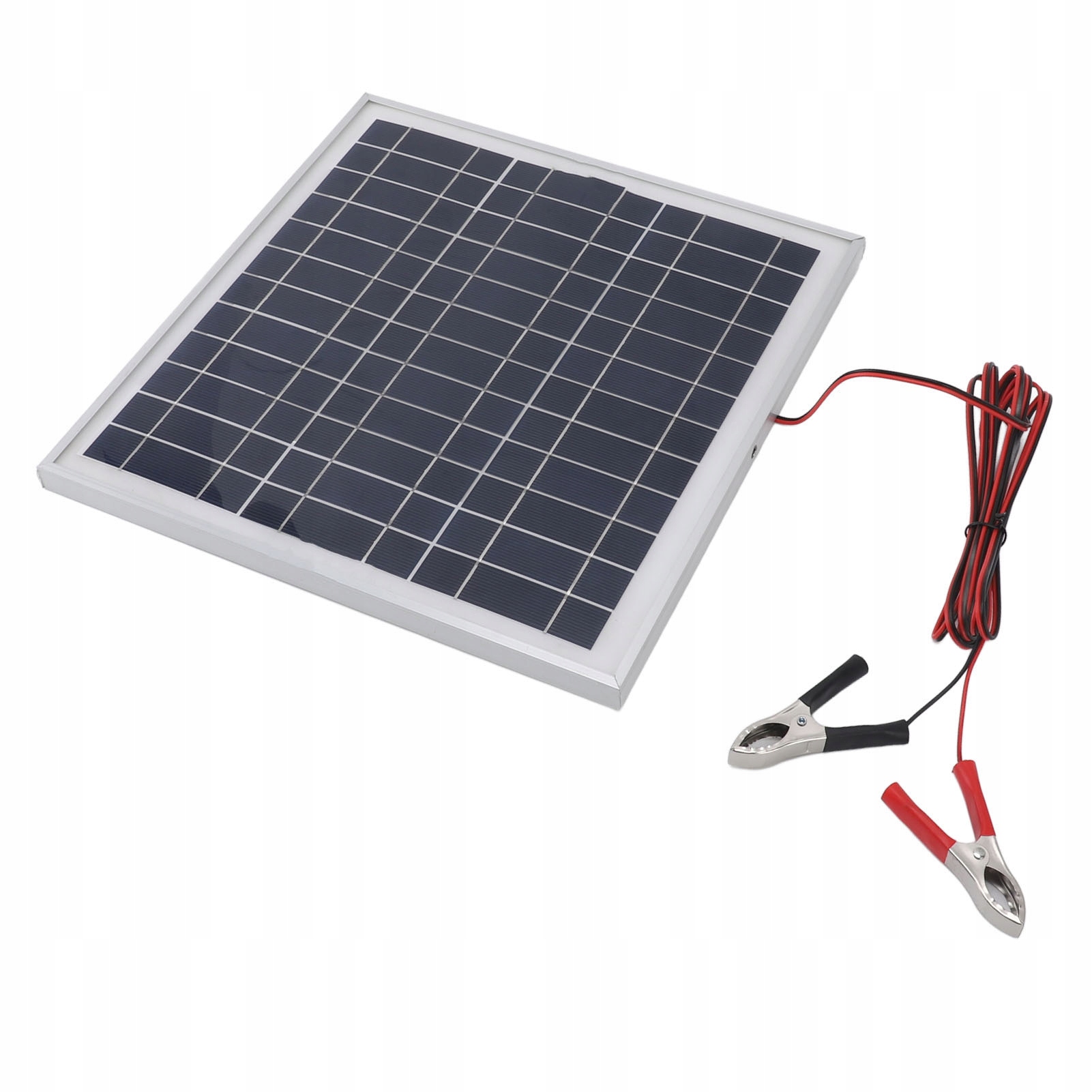 3. Конструкція затискача для батареї: Сонячна панель постачається з червоними та чорними затискачами для батареї для легкого підключення батарей. Ця конструкція забезпечує стабільну та безпечну зарядку, захищаючи ваші пристрої та акумулятори.