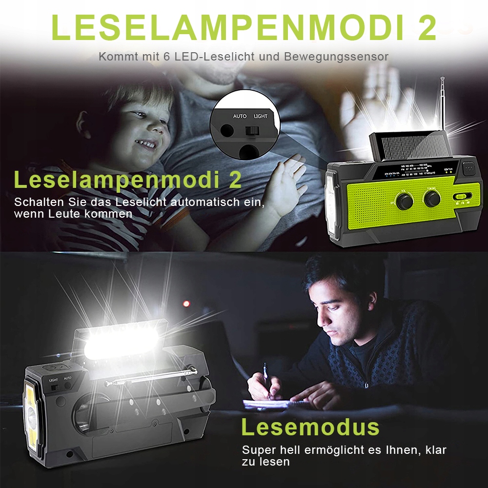 ❤Радіо — це портативна багатофункціональна радіостанція в діапазоні частот AM FM. Його можна використовувати як ліхтарик у темряві, радіопередавач на вулиці, зарядний пристрій у разі поломки, лампу для читання під час кемпінгу та функцію SOS із миготливим світлом у екстреній ситуації.