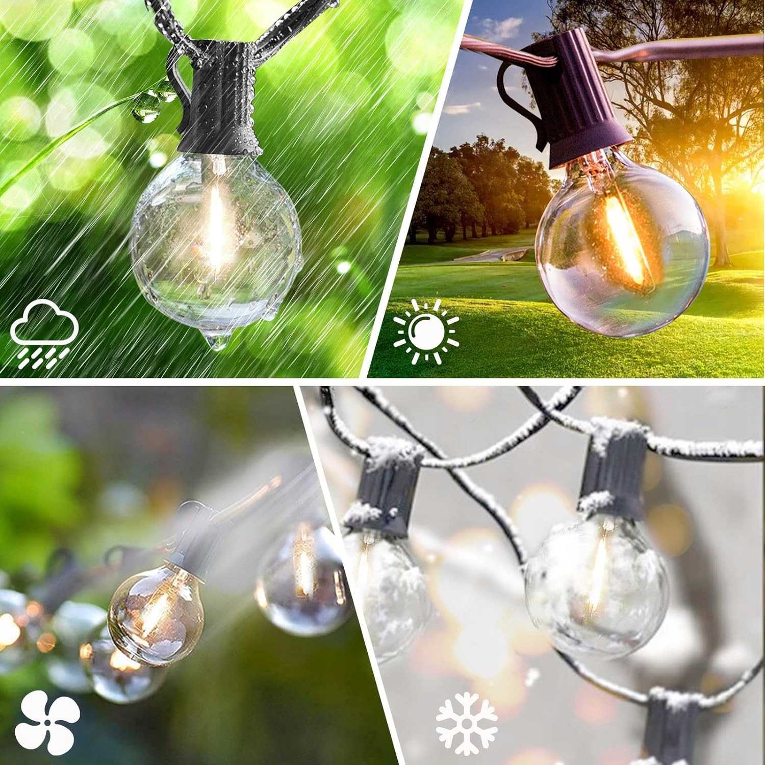 Як сонячна панель, так і самі ліхтарі водонепроникні. Мають захист від вологи та пилу на рівні IP44. Це означаєзахист від бризок води та пилку діаметром понад 1 мм. Це гарантує, що дощ не буде перешкодою для освітлення. Садові світильники можна без проблем повісити в саду, на терасі, балконі або в альтанці. Однак пам’ятайте, що гірлянду не можна класти у стоячу воду чи занурювати в неї.
