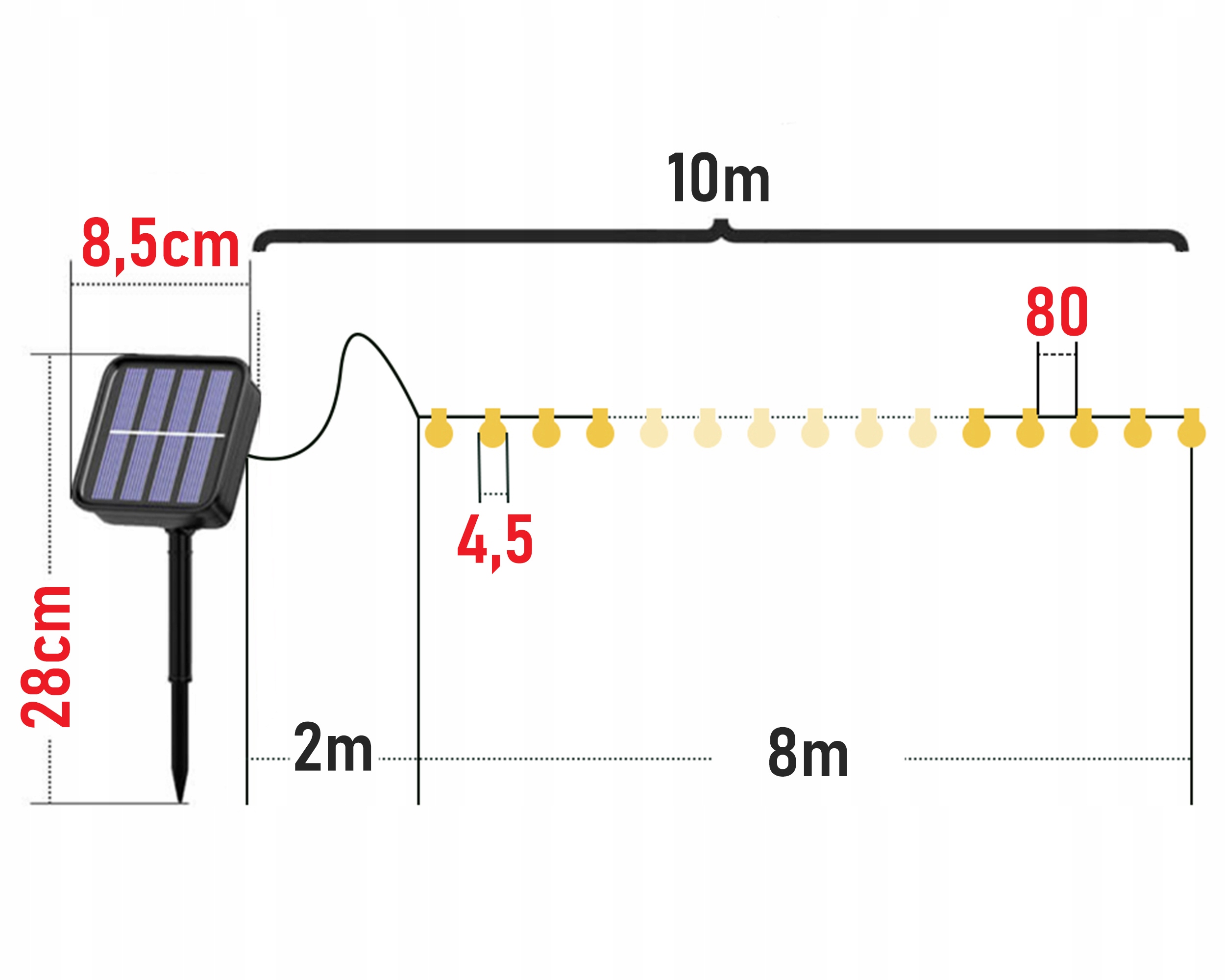 Сонячна садова гірлянда для зовнішнього освітлення 10 м 10x E27 світлодіодна лампа + пульт дистанційного керування