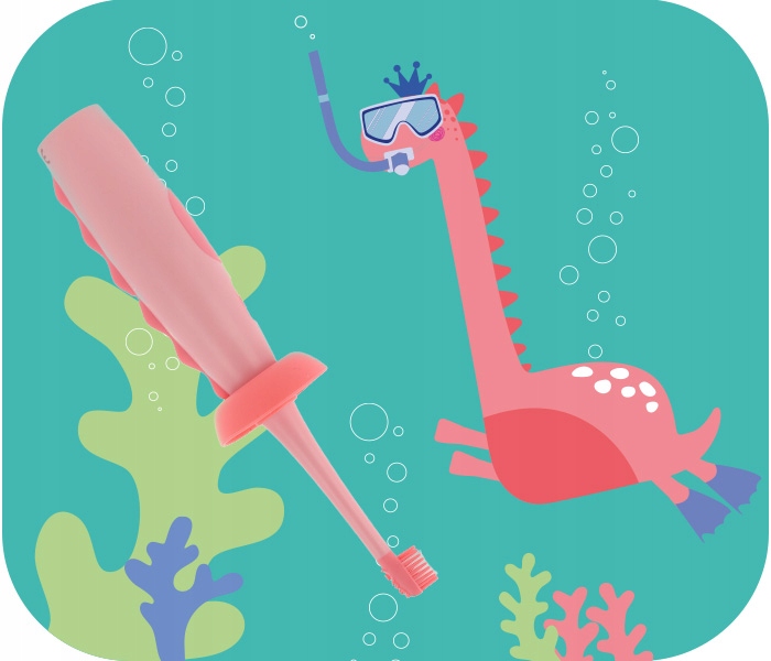 vitammy dino з його зовнішнім виглядом заохочує наймолодший систематично мити зуби . Весела форма динозавра i барвистий дизайн викликає інтерес, і посміхається навіть вранці. 4 Крім того, тиха робота та зменшені вібрації роблять чищення зубів зручними для малюка .