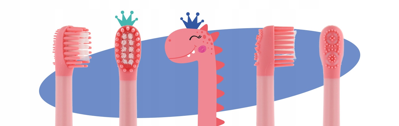 Інноваційна конструкція голови Vitammy dino змусить вас досягти максимальних переваг без особливих зусиль. міцний у dupont ™ м'які та округлі , делікатні для емалі. вкладки силікону обережно масажувати ясна і допомагають очистити язик і щоки . Довга, вузька шия голови дозволяє досягти найдальших куточків рота дитини.