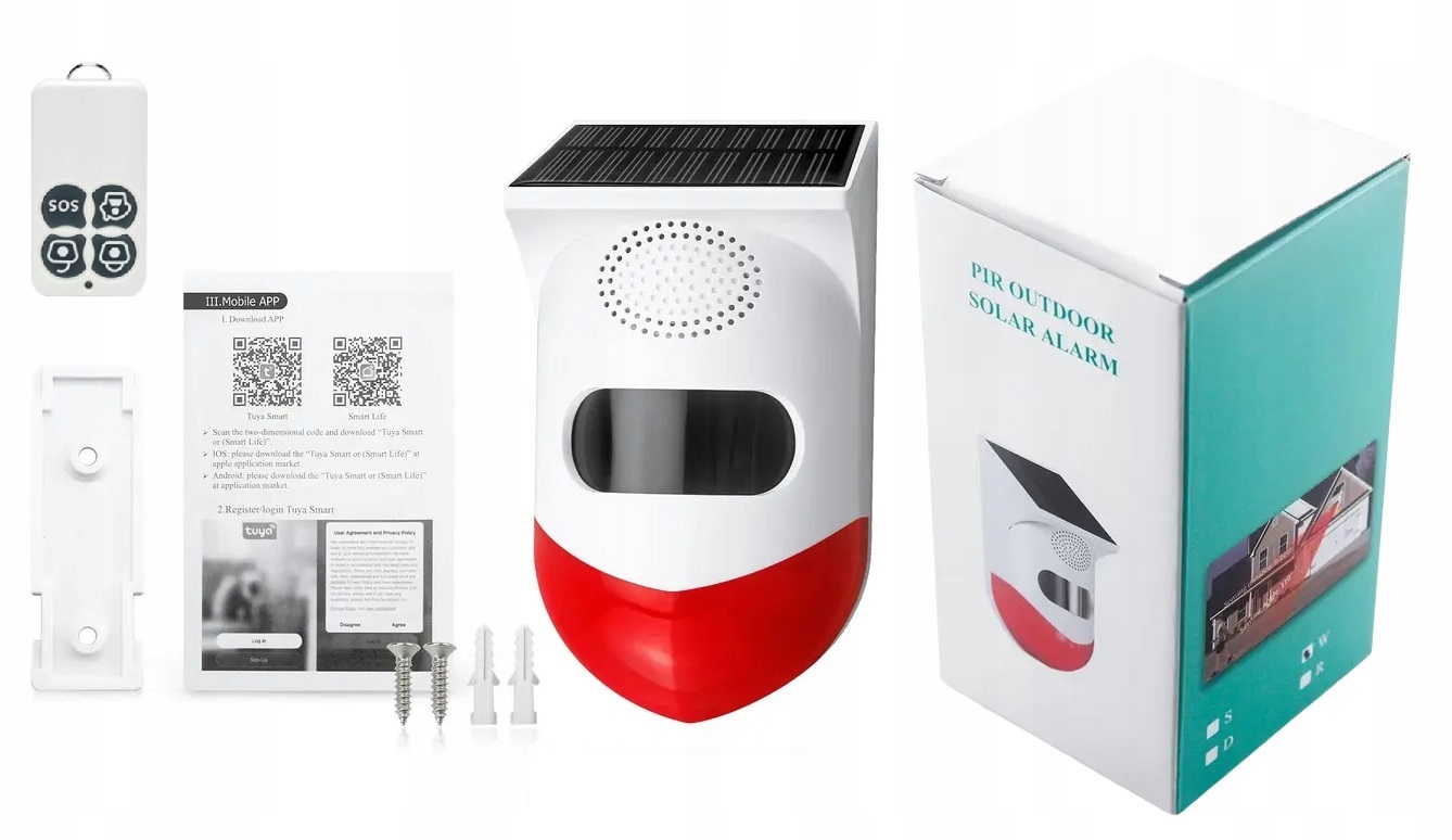 СОНЯЧНА СИРЕНА СИГНАЛІЗАЦІЯ 120DB PIR WiFi SENSOR з додатком Tuya Smart польською мовою