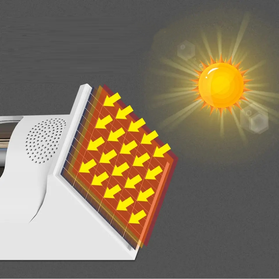 Пристрій працює повністю без проводів завдяки вбудованому акумулятору, який заряджається від сонячної панелі. При повністю зарядженому акумуляторі сирена може працювати до 60 днів, що робить її корисною в будь-яку пору року.