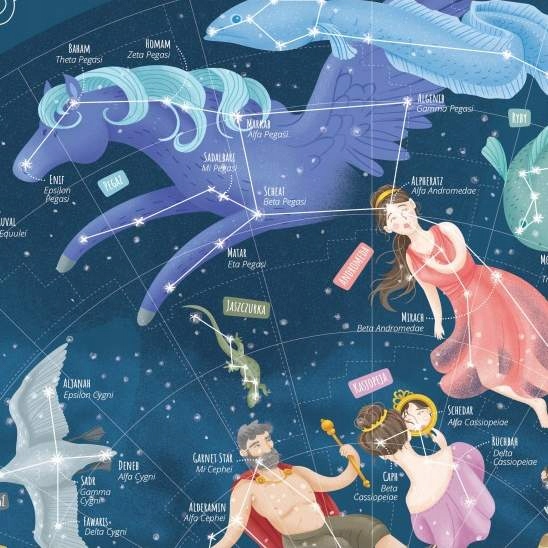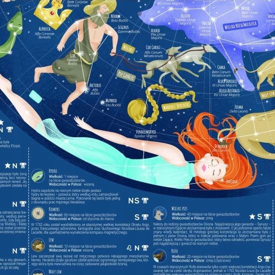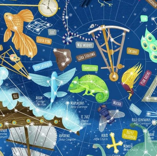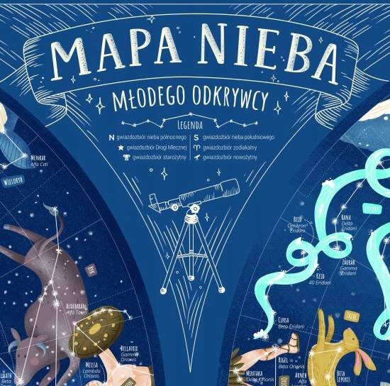 Для дітей була створена карта, щоб ознайомити їх з астрономічними фактами та цікавинками про зоряні системи. Завдяки ретельно продуманій казковій графіці, повній яскравих кольорів, карта приверне увагу кожного учня. Серед іншого використовувався поділ на північне та південне небо, а кожному з описаних сузір’їв було присвоєно відповідний символ та додаткові факти – про період видимості даного сузір’я в Польщі та його положення в списку сузір’їв, визначеному відповідно до розміру території.