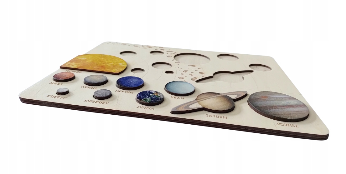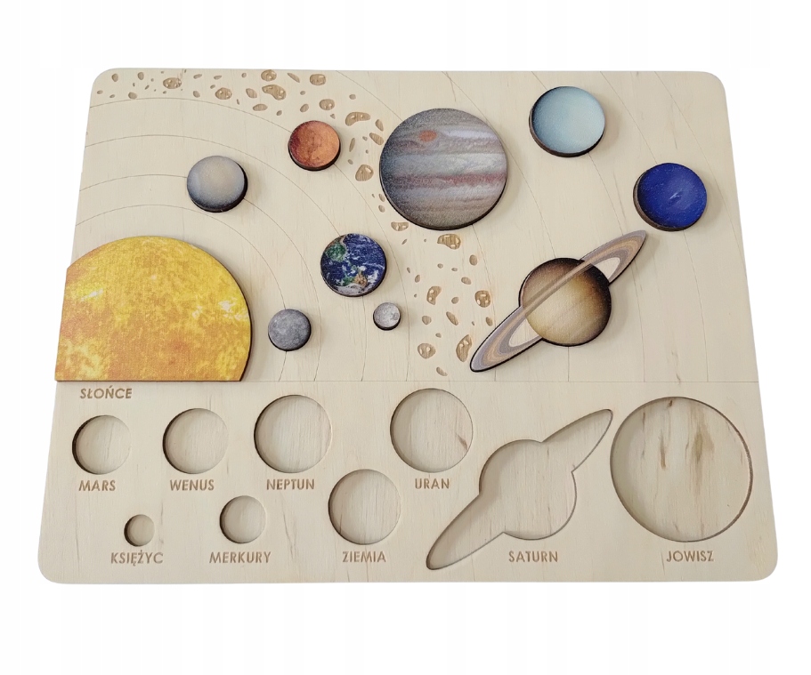 Навчальний пазл з дерев'яної фанери. Кольорові планети з УФ-принтом і вигравіруваною основою перетворюють вивчення космосу на захоплюючу гру. Ідеальний навчальний посібник і унікальний подарунок для маленьких дослідників.