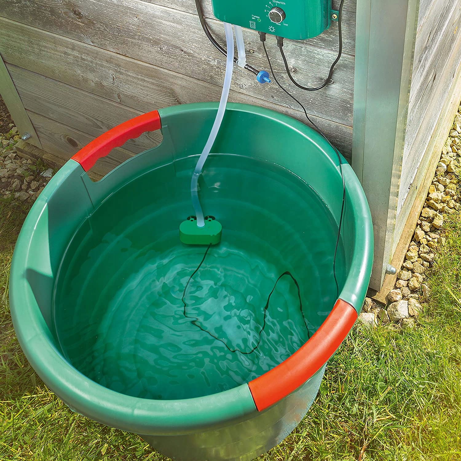 Просто повісьте його в бочку з водою, відро або природний отвір для чистої води. Датчик рівня води, що входить у комплект, вимикає насос, коли це необхідно, і вказує на це за допомогою світлодіода стану, захищає від сухого ходу.