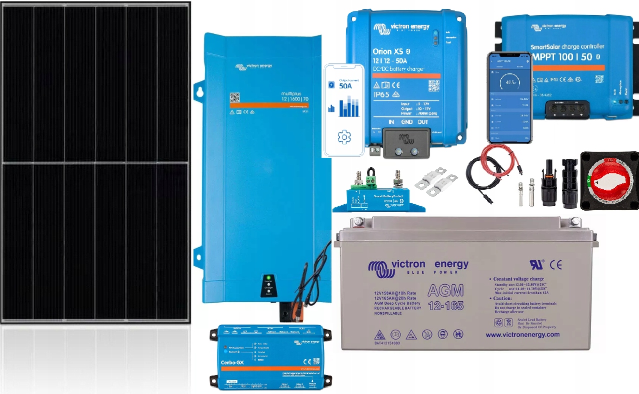 Набір призначений для забезпечення безперервного електропостачання кемперів у будь-якій точці світу. Конфігурація системи і три незалежних способи зарядки батареї дозволяють стабільно підтримувати пристрої 230В і 12В. Система також необхідна для підтримки роботи критичного обладнання за допомогою функції ДБЖ. Завдяки використанню передових технологій комплект надійний, компактний і простий в установці, а також дозволяє здійснювати додатковий віддалений моніторинг і управління енергією. Це рішення не тільки підвищує безпеку, але й заощаджує витрати, пов’язані з поломками обладнання та простоєм автомобіля.