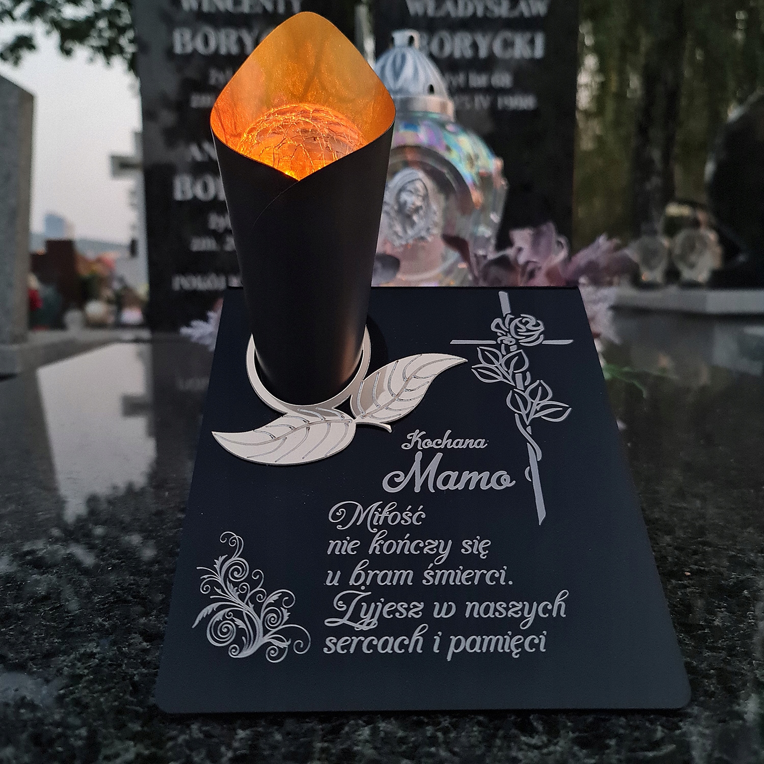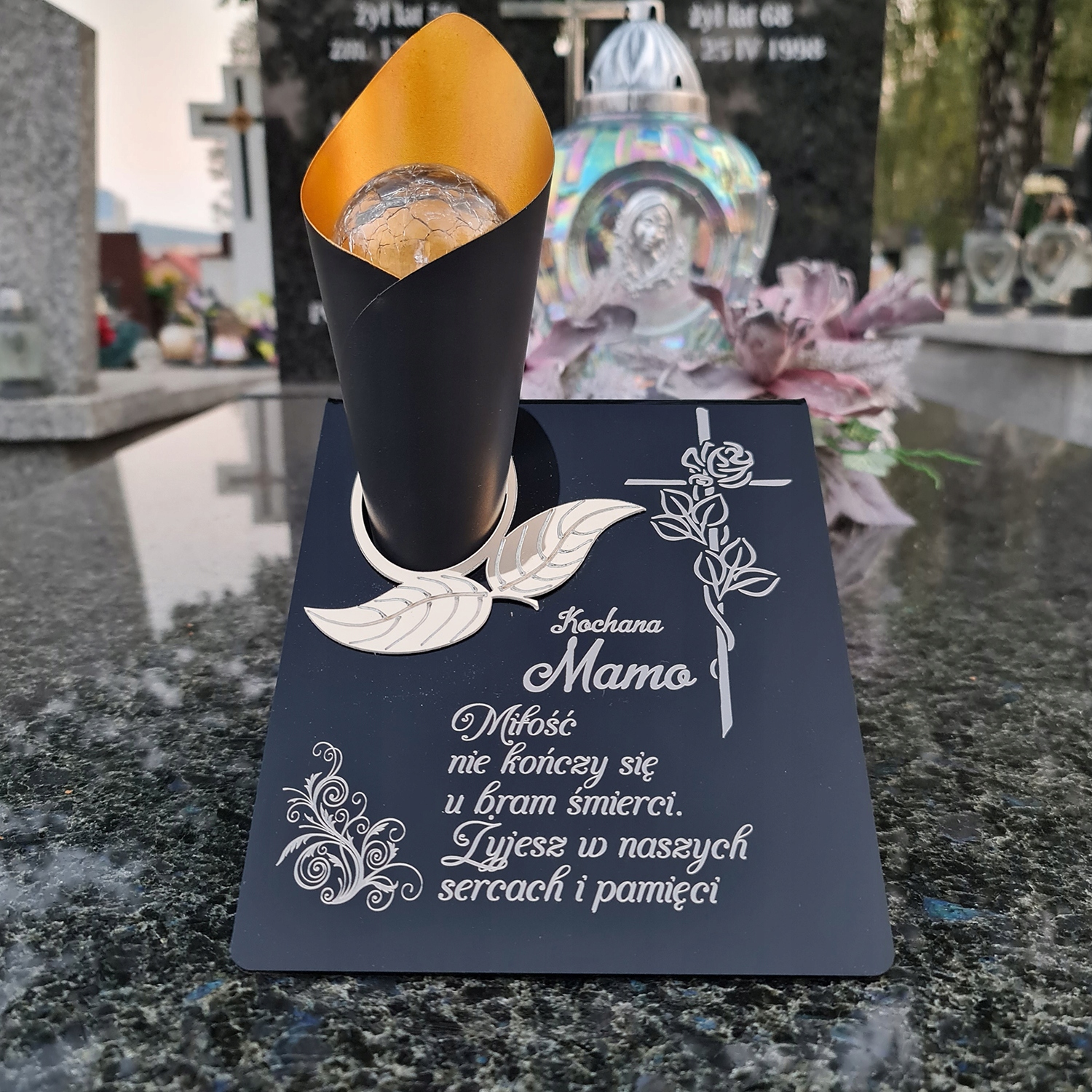 Вічна сонячна свічка для могили з гравірованими акриловими скляними підставками, прикрашеними золотистими листям