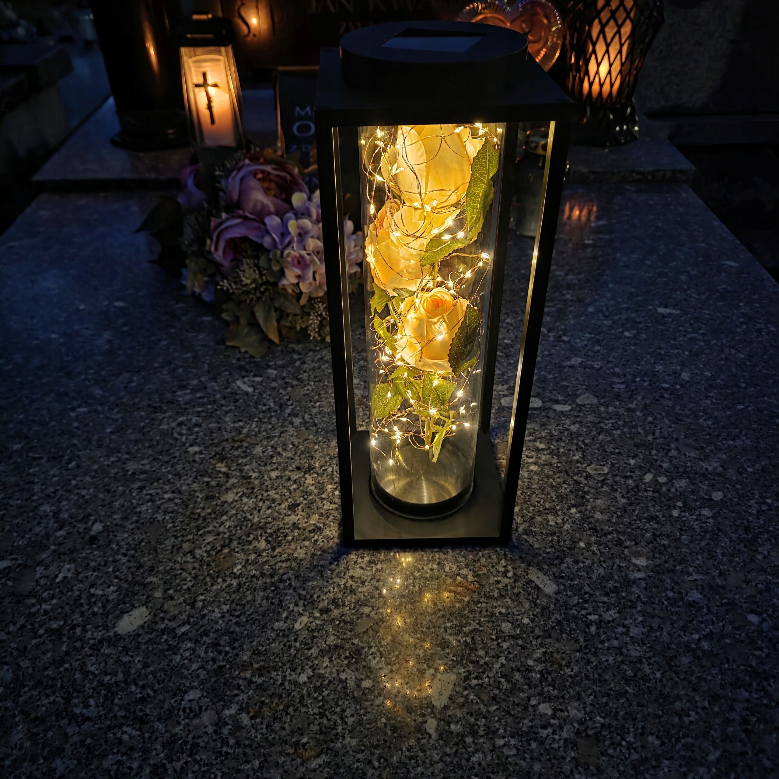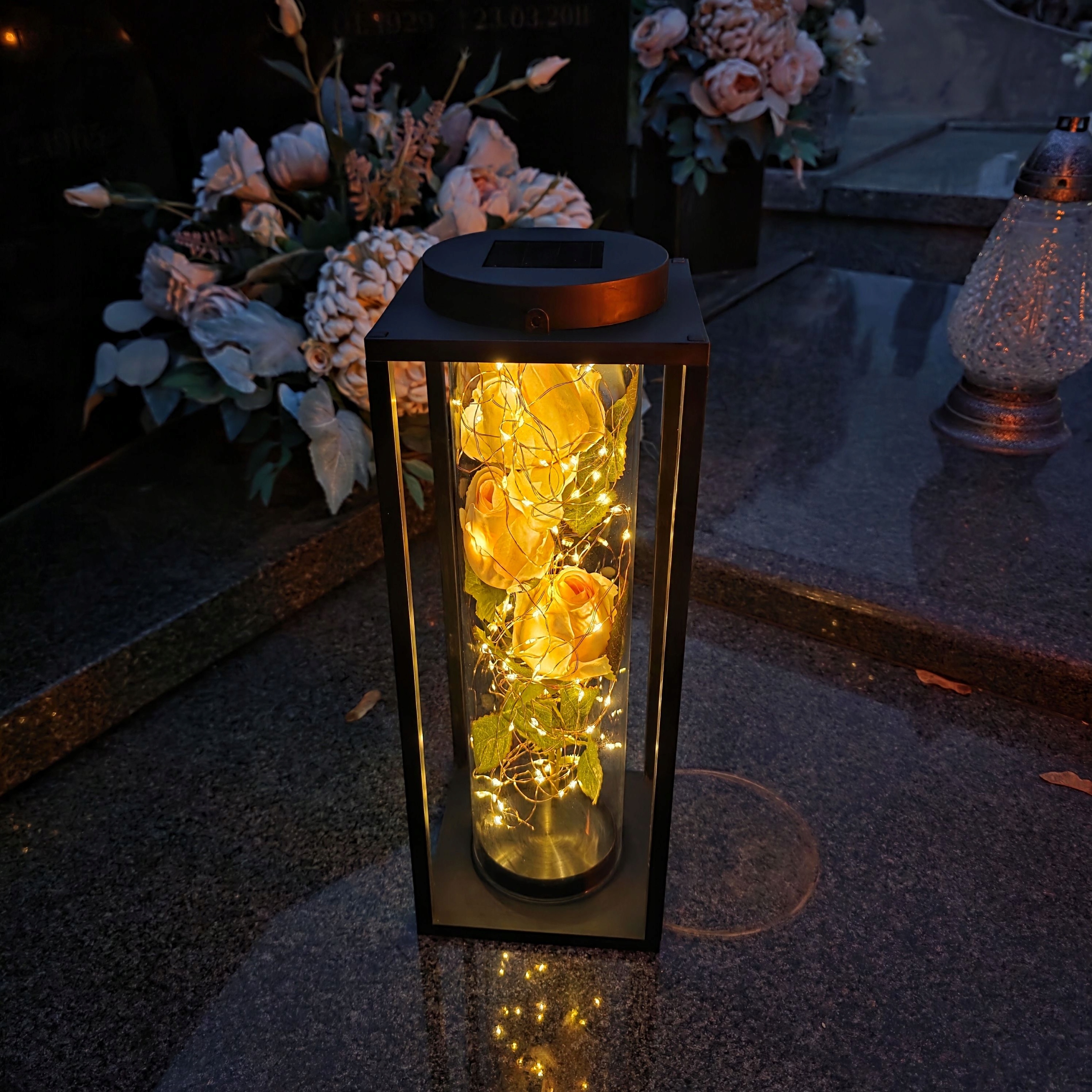 Сонячна свічка, світлодіодний ліхтар, НА МОГИЛИ, цвинтар, БІЛА ТРОЯНДА, вічний, великі квіти