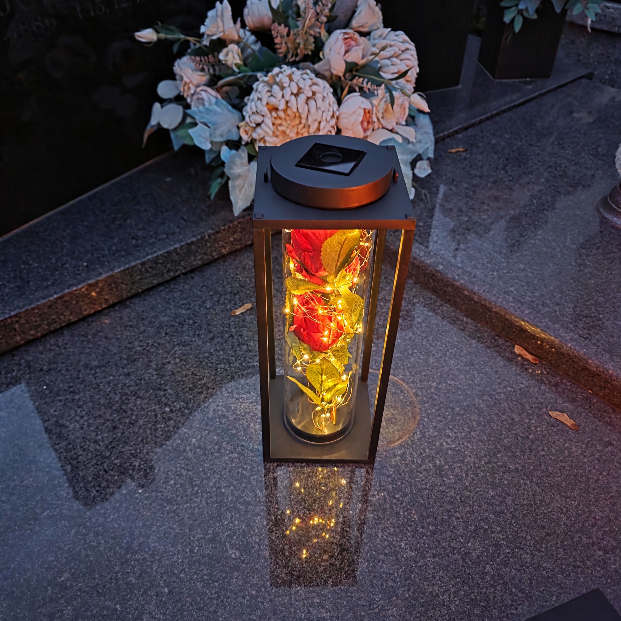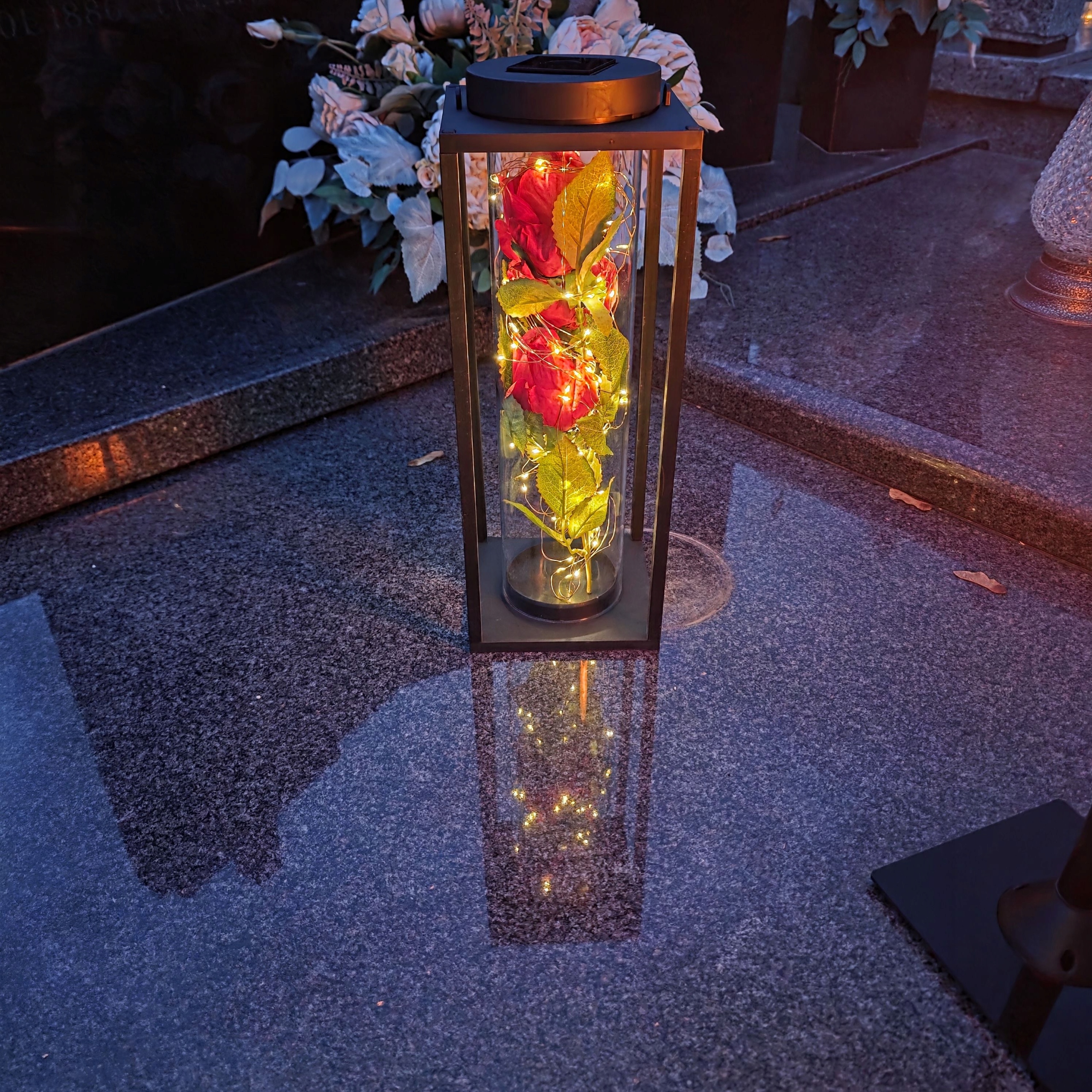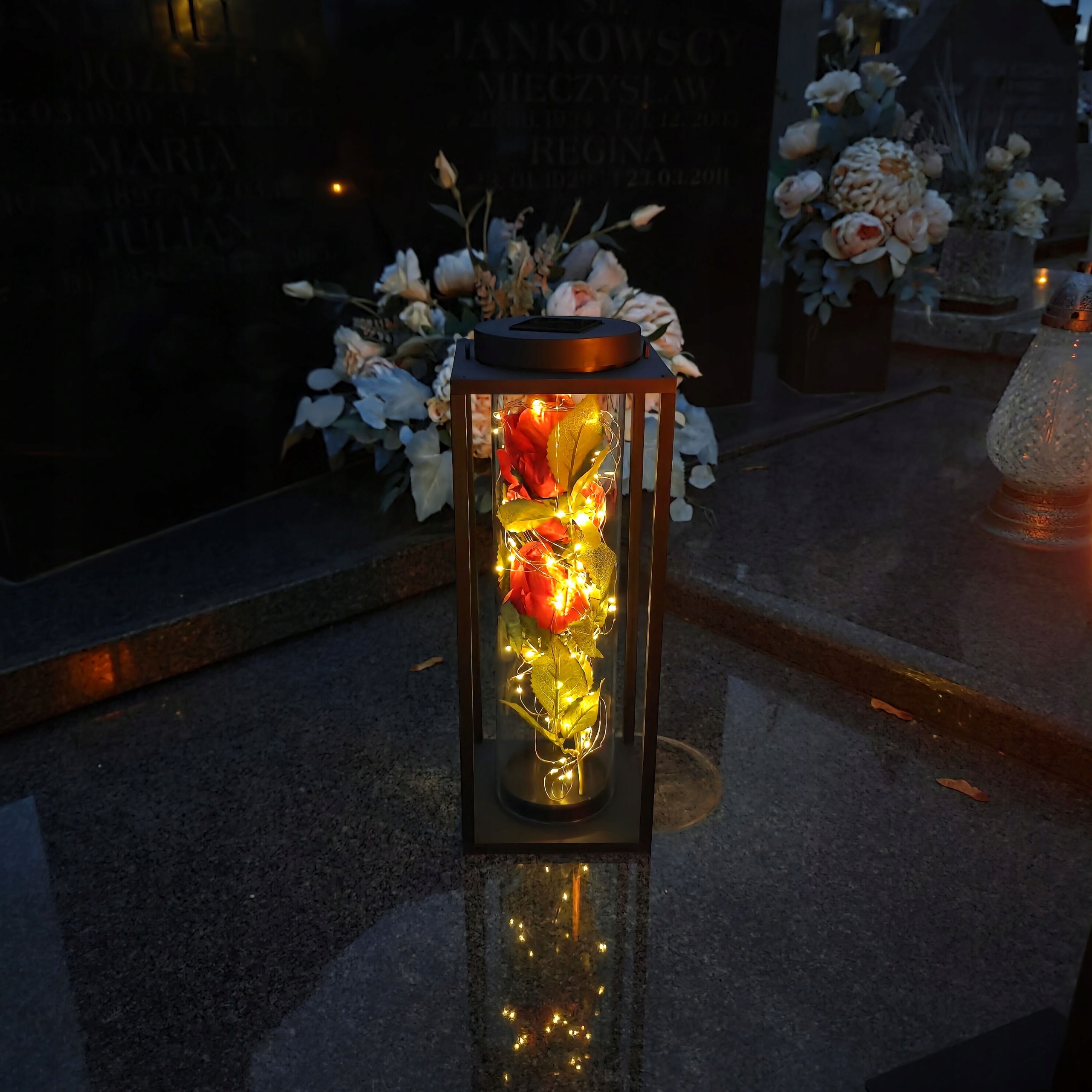 Сонячна свічка, світлодіодний ліхтар, НА МОГИЛИ, цвинтар, ЧЕРВОНА ТРОЯНДА, вічна, велика квітка