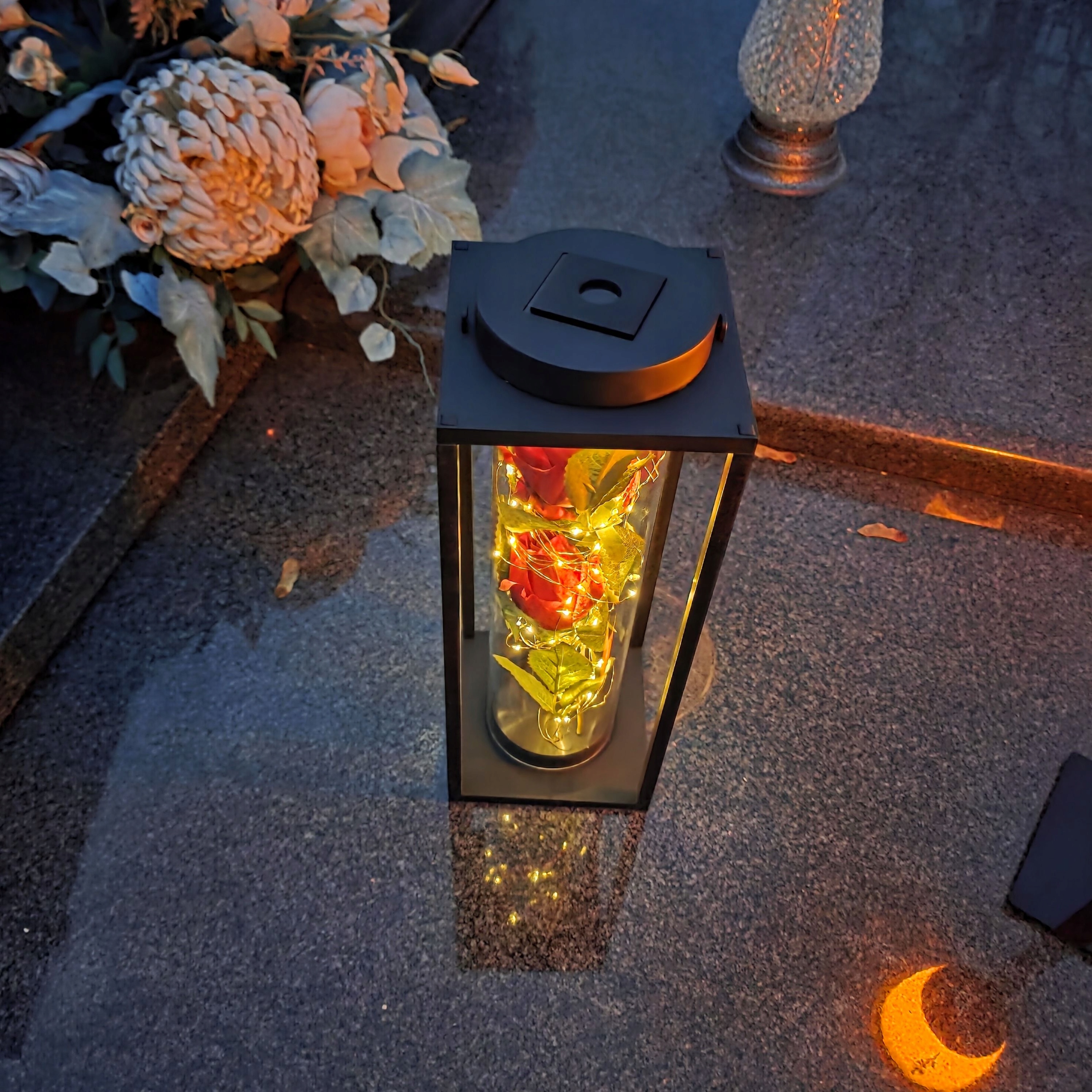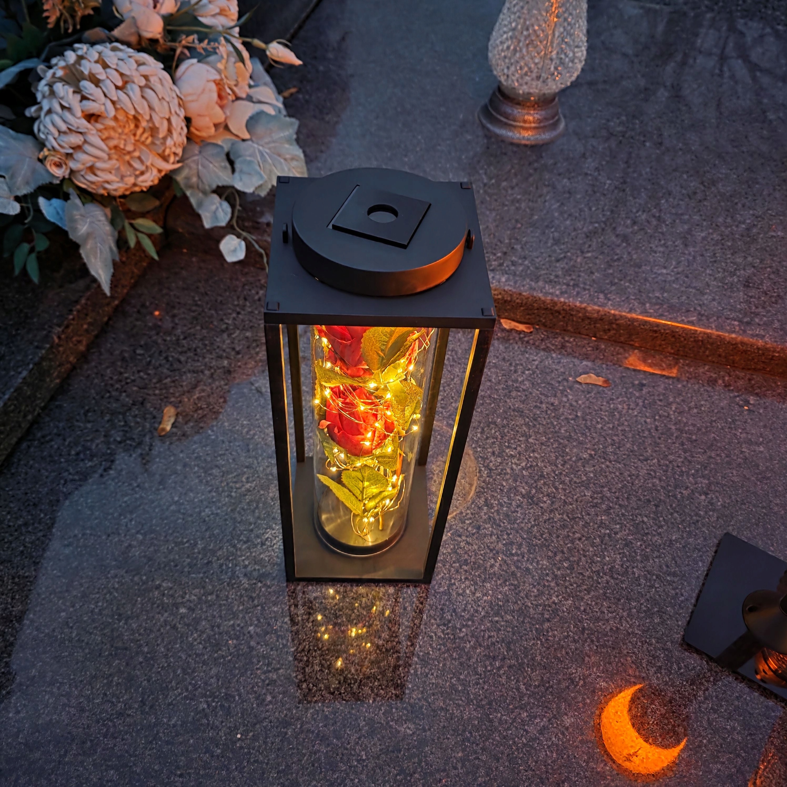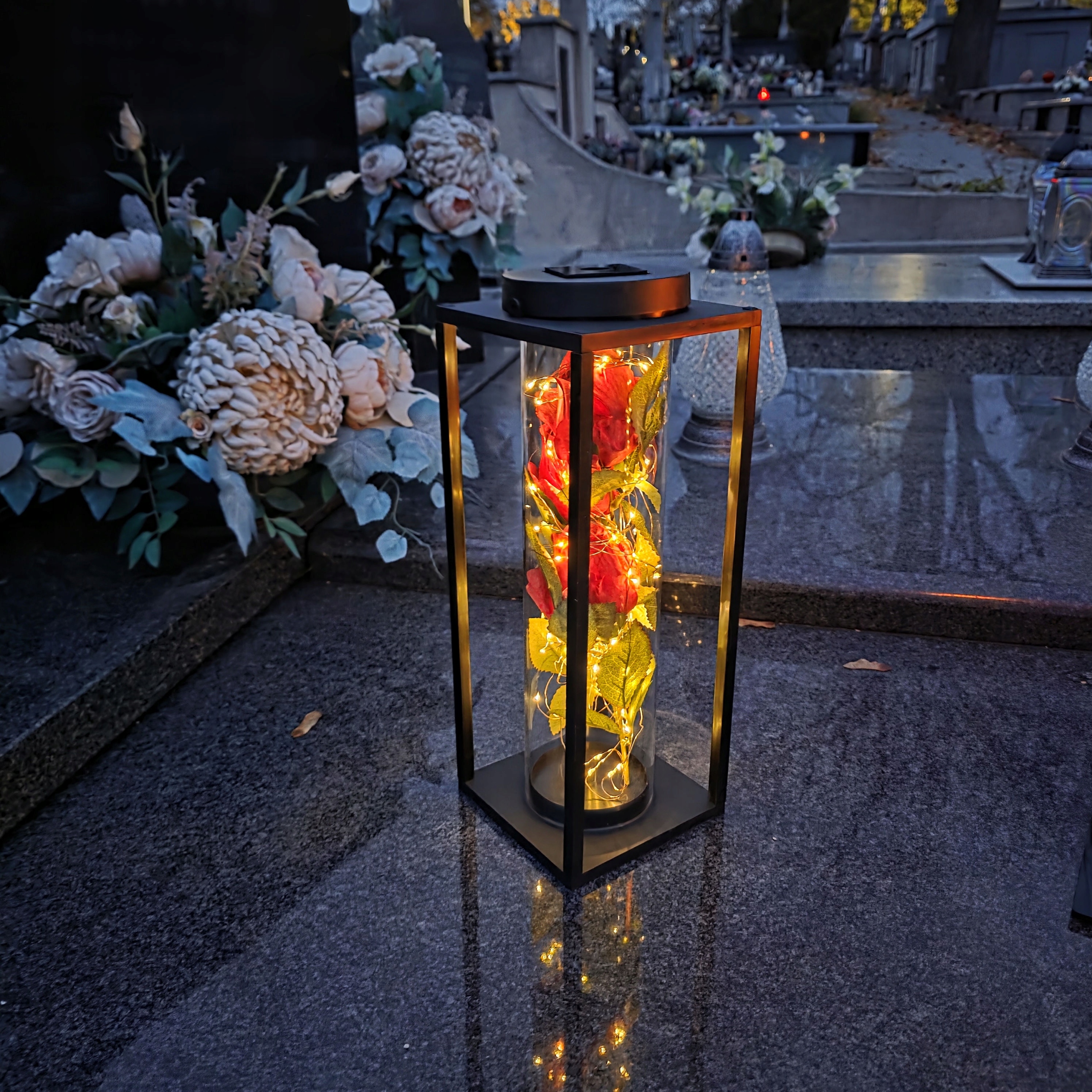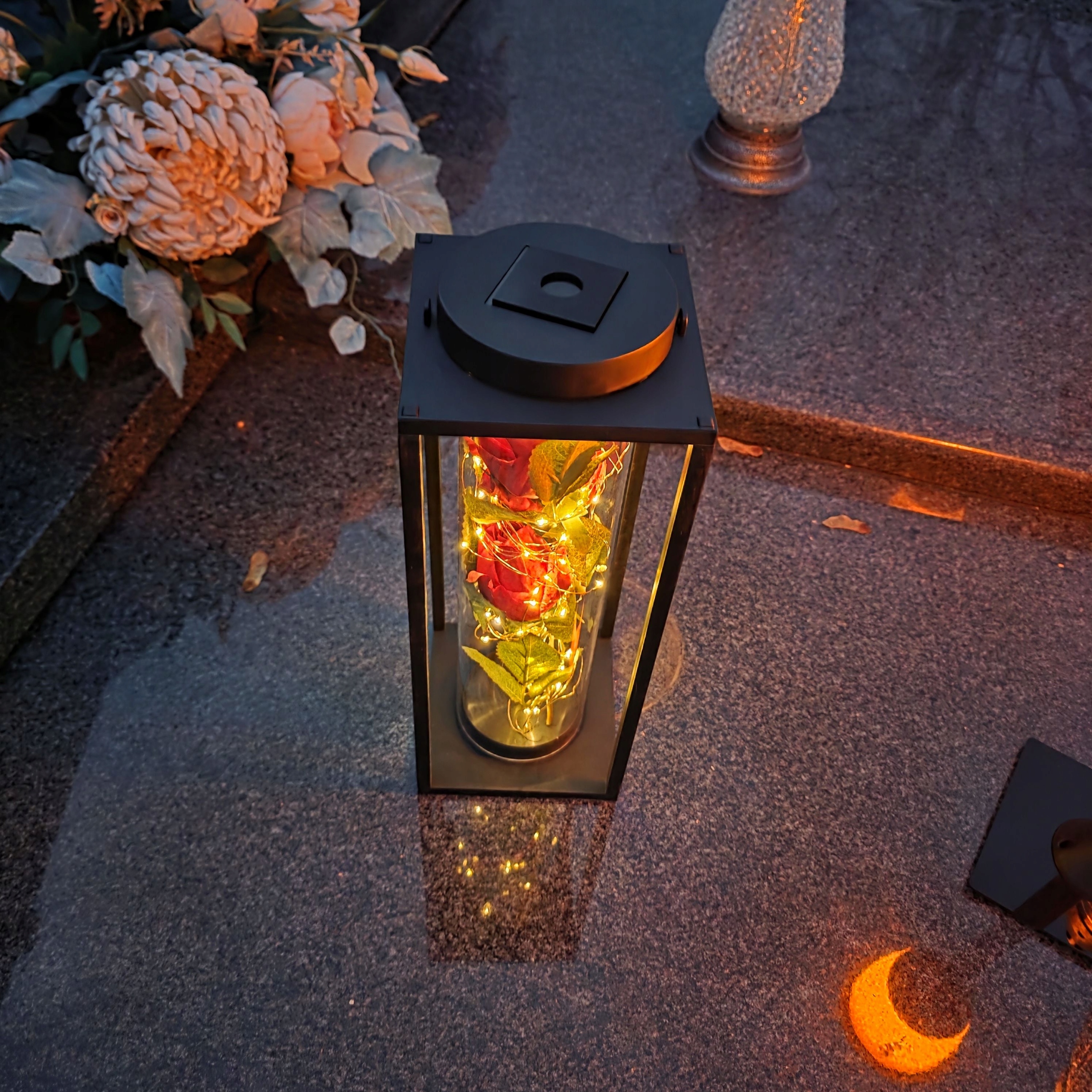 Сонячна свічка, світлодіодний ліхтар, НА МОГИЛИ, цвинтар, ЧЕРВОНА ТРОЯНДА, вічна, велика квітка