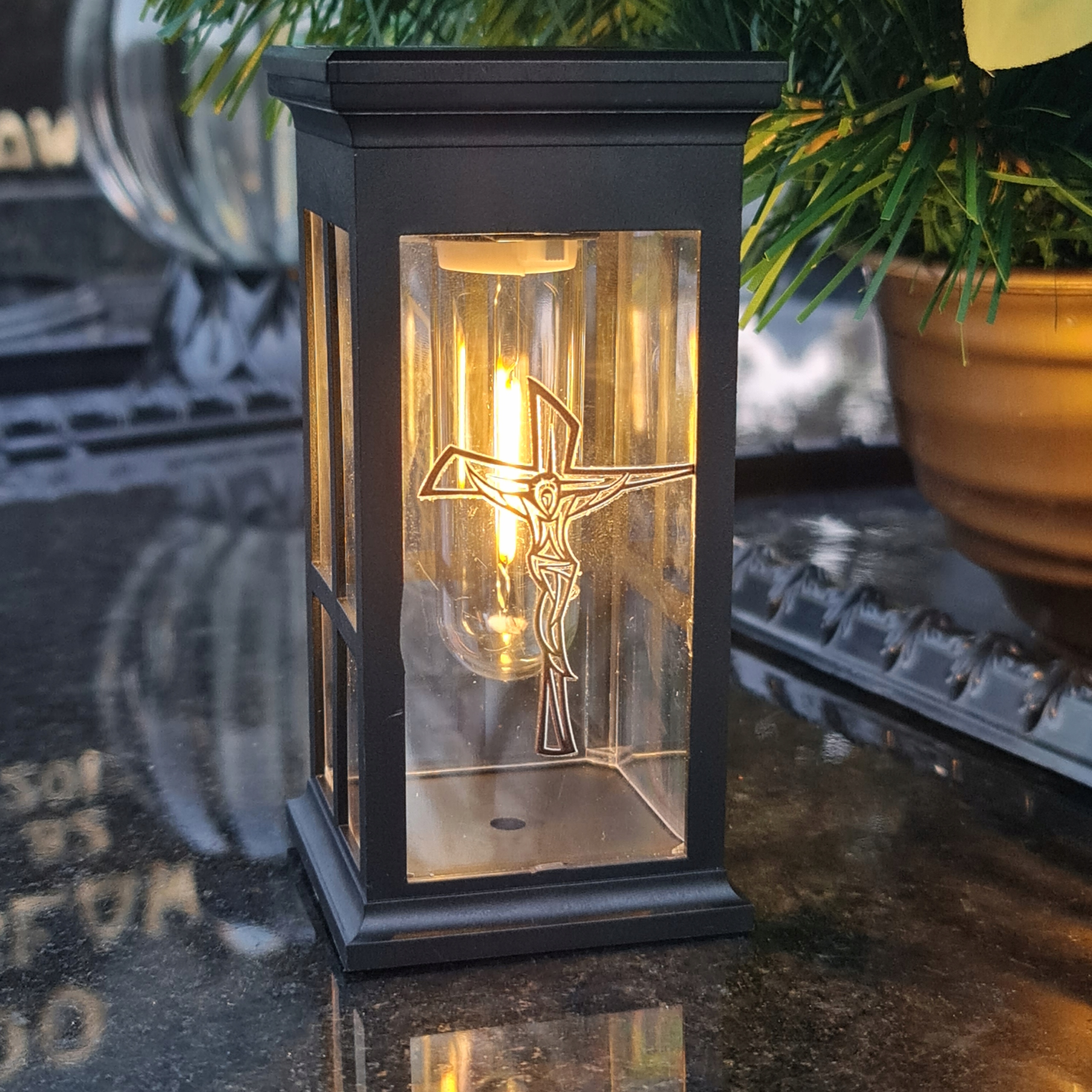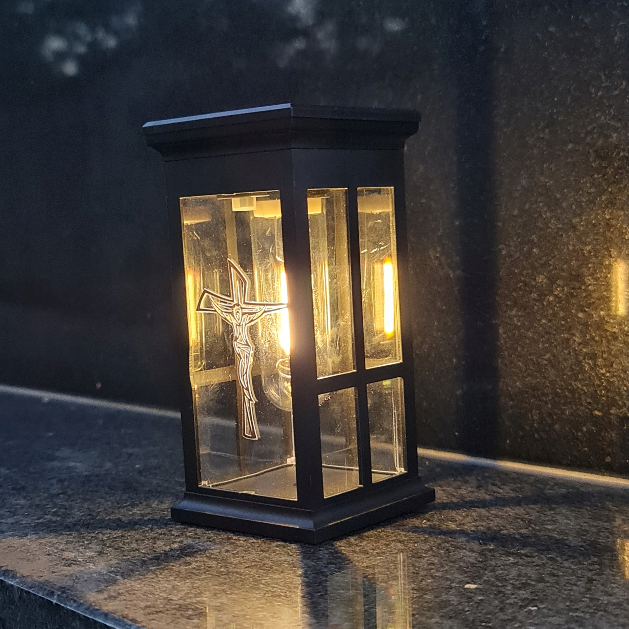 Відкрийте для себе елегантний спосіб вшанувати пам’ять своїх близьких за допомогою екологічно чистої світлодіодної сонячної свічки. Виготовлений надзвичайно акуратно, з небиткого акрилового скла та ефекту природного теплого світіння. Ця свічка є поєднанням сучасності та традицій. Високоякісні компоненти роблять його стійким до будь-яких погодних умов. Свічка має вбудований перемикач, який потрібно активувати, щоб ліхтар вмикався та вимикався в сутінках 360 днів на рік без нашого втручання протягом наступних кількох років.
