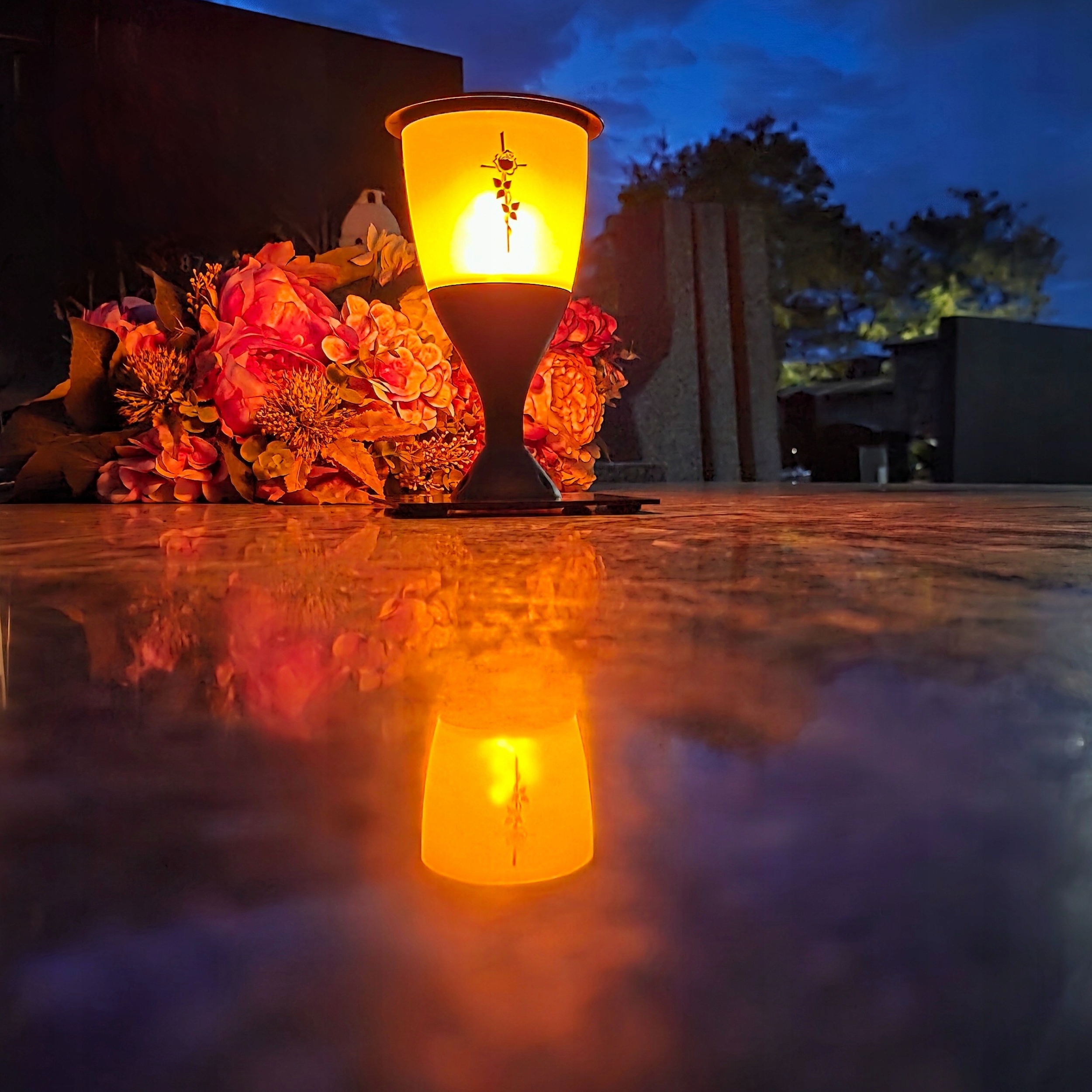 Завдяки сонячній батареї свічка заряджається протягом дня, щоб автоматично освітлювати надгробок після настання темряви. Має 3 режими освітлення - від ніжного світіння до яскравого світла, що імітує справжнє полум'я. У комплект входить USB-кабель для додаткової зарядки, що дозволяє заряджати навіть у похмурі дні.